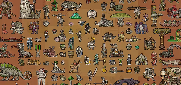 (以古代壁画和俄罗斯方块为灵感动机,仅此一家的独特画风与玩法) - 四百种性格各异的幻想生物。