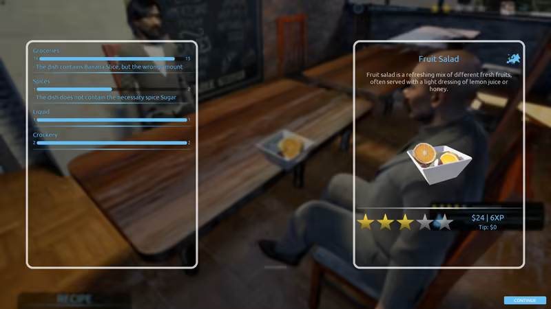 选择 “职业生涯模式”,随着进度解锁新内容,或者选择 “沙盒模式”。在这里,您可以尽情发挥自己的创造力,专注于烹饪,而不必担心金钱或生意。