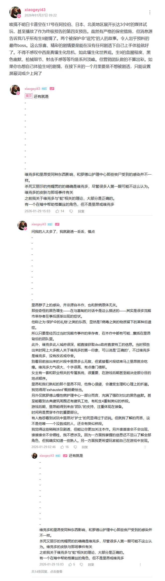 该爆料人在与网友交流时透露,自己的情报来源十分可靠——来自一位参与德国试玩活动的朋友,据称试玩现场的工作人员曾向这位朋友透露部分游戏细节。除此之外,爆料人还表示自己观看了一段全新预告,并明确透露,游戏最终预告大概率会在2月中旬的State of Play活动中正式公开,这也让玩家对后续消息充满期待。