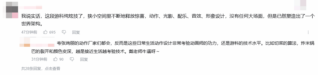 不过吐槽之外,也有不同的声音。不少热衷挖掘细节的“黑学家”,仔细拆解了短片中的每一处画面,不仅没有吐槽,反而盛赞这段短片全程“纯炫技”,从画面质感到底层渲染,处处都能看到游戏科学“满满的技术力”,直言即便没有玩法展示,也被这份制作水准打动。