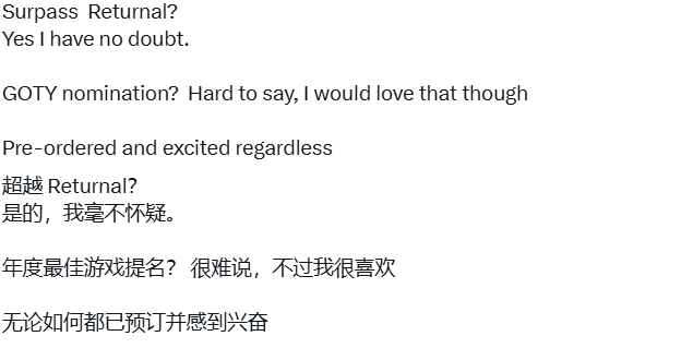 博主的这番表态,也引发了玩家们的热烈讨论,不少玩家在评论区留言表达了自己的期待。有玩家坦言,完全不怀疑《沙罗周期》能超越《死亡回归》,自己纯粹是出于想再体验一款Housemarque高质量作品的心愿,满心期待它能成功拿下年度提名,不负粉丝们的等待。