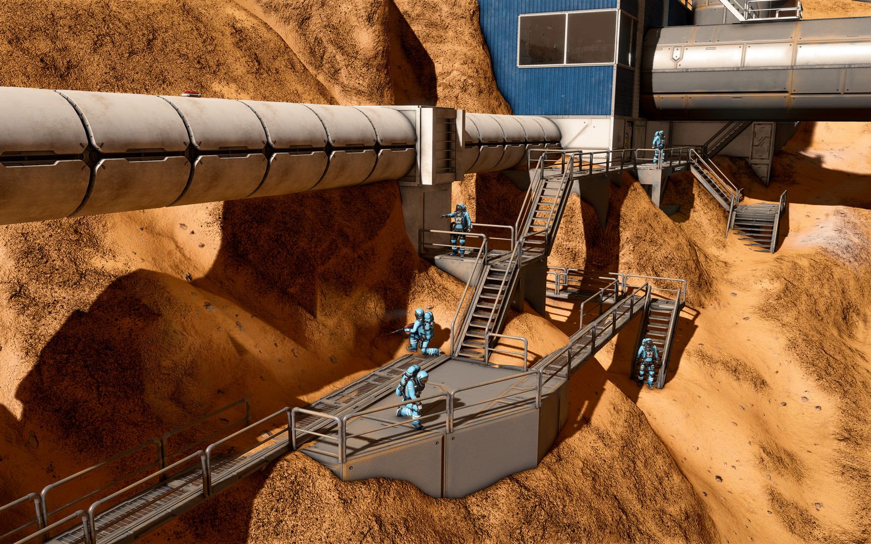 《太空工程师》使用了内部构造的VRAGE 2.0,真实体积的物理引擎:所有物体都可以被组装,分解,损坏和破坏。