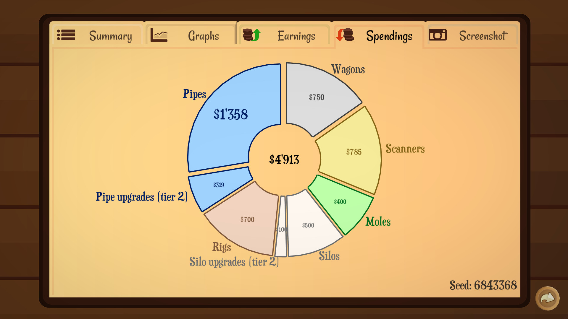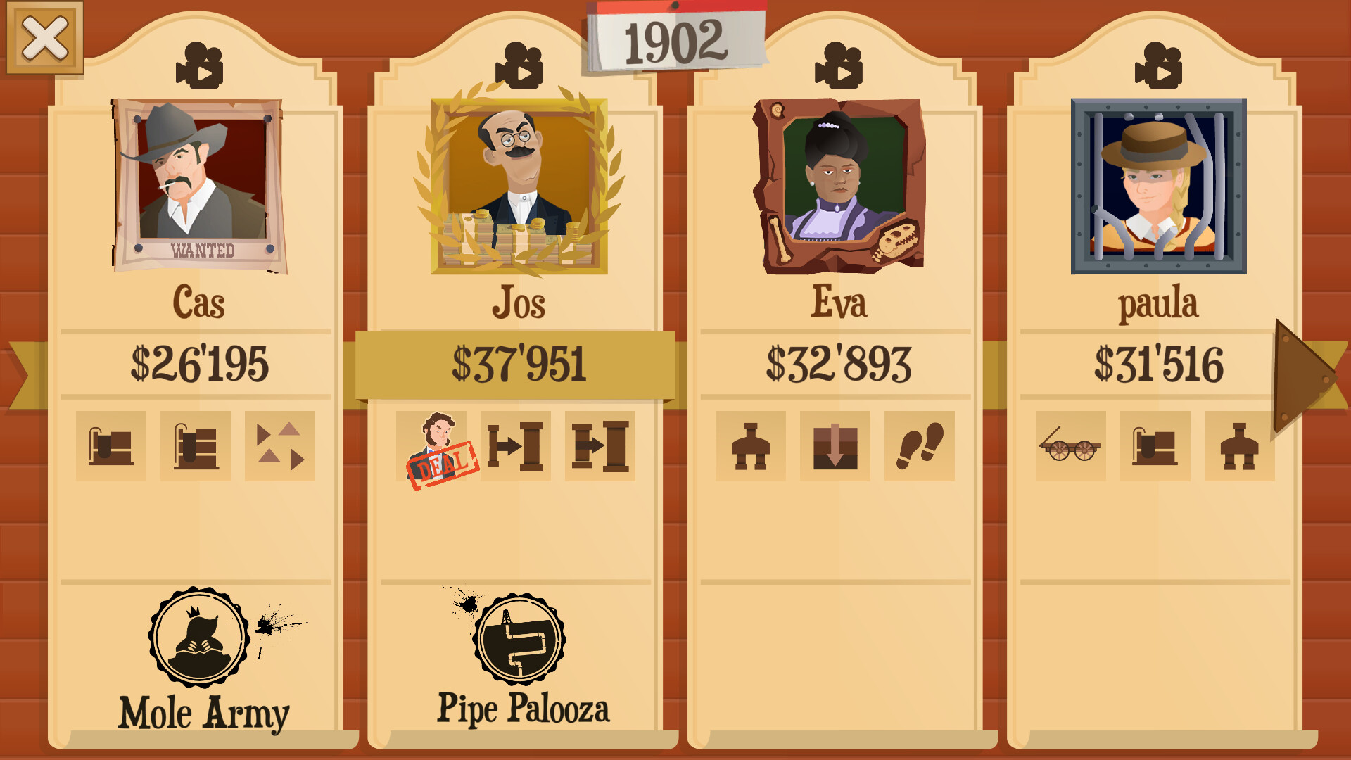 在小镇拍卖会上租土地,寻找石油。建造钻井设备,创建一个高效的管道网络,挖出石油并将它们存储在筒仓中。在最佳时间出售石油,使利润最大化。而后,购买镇上的基本升级以应付岩石、天然气和冰块。在竞标中获得比竞争对手更多的股份,成为新市长。
