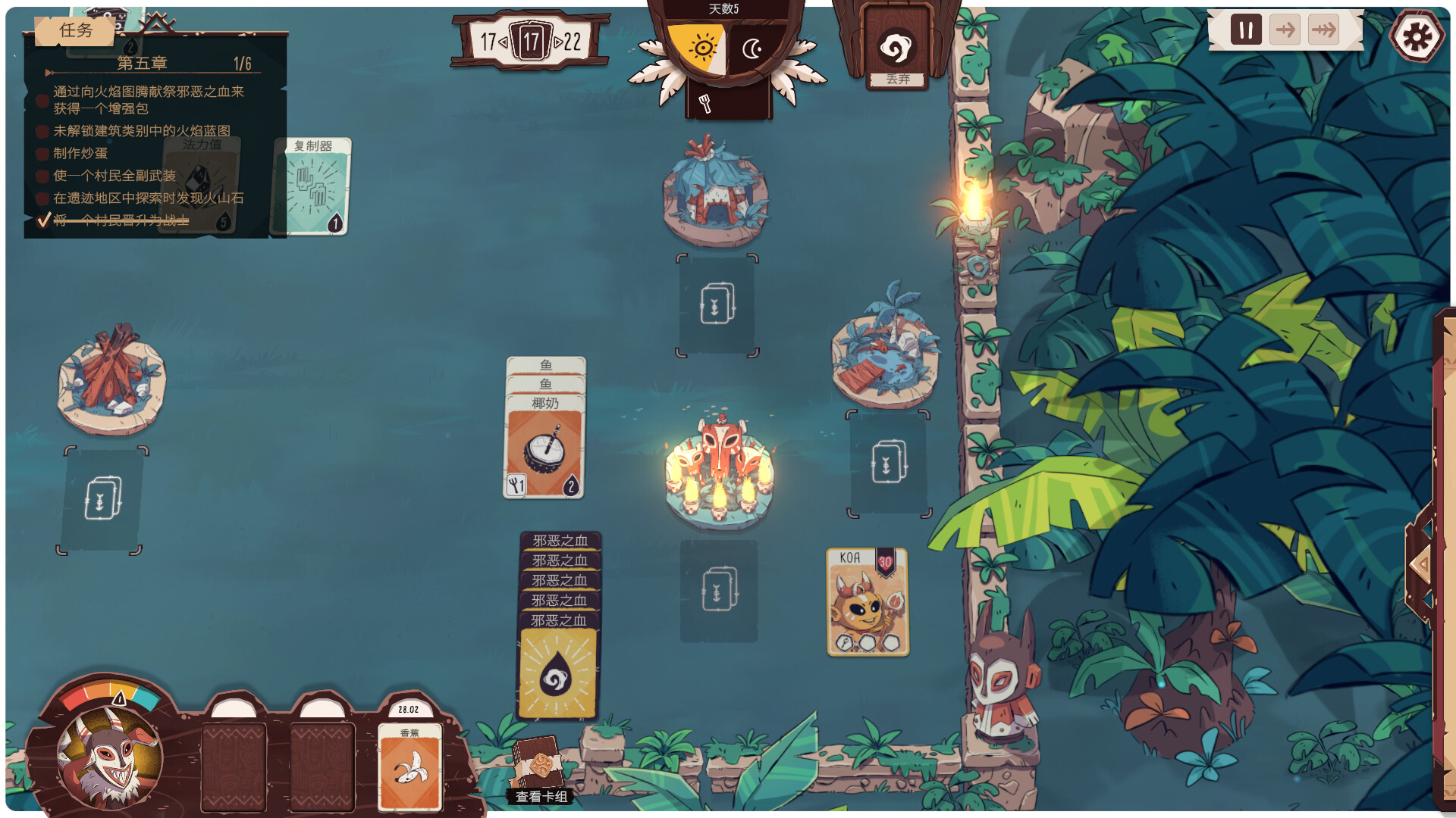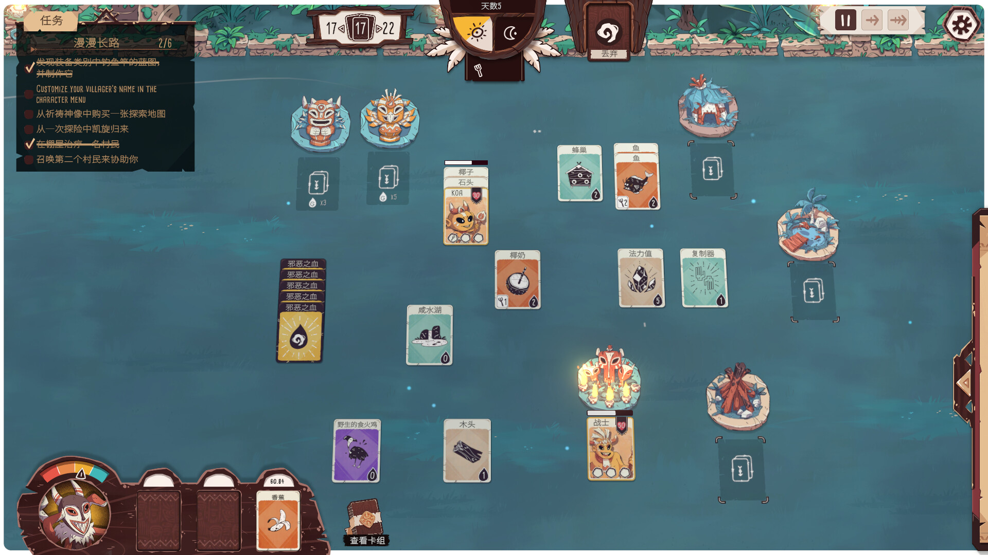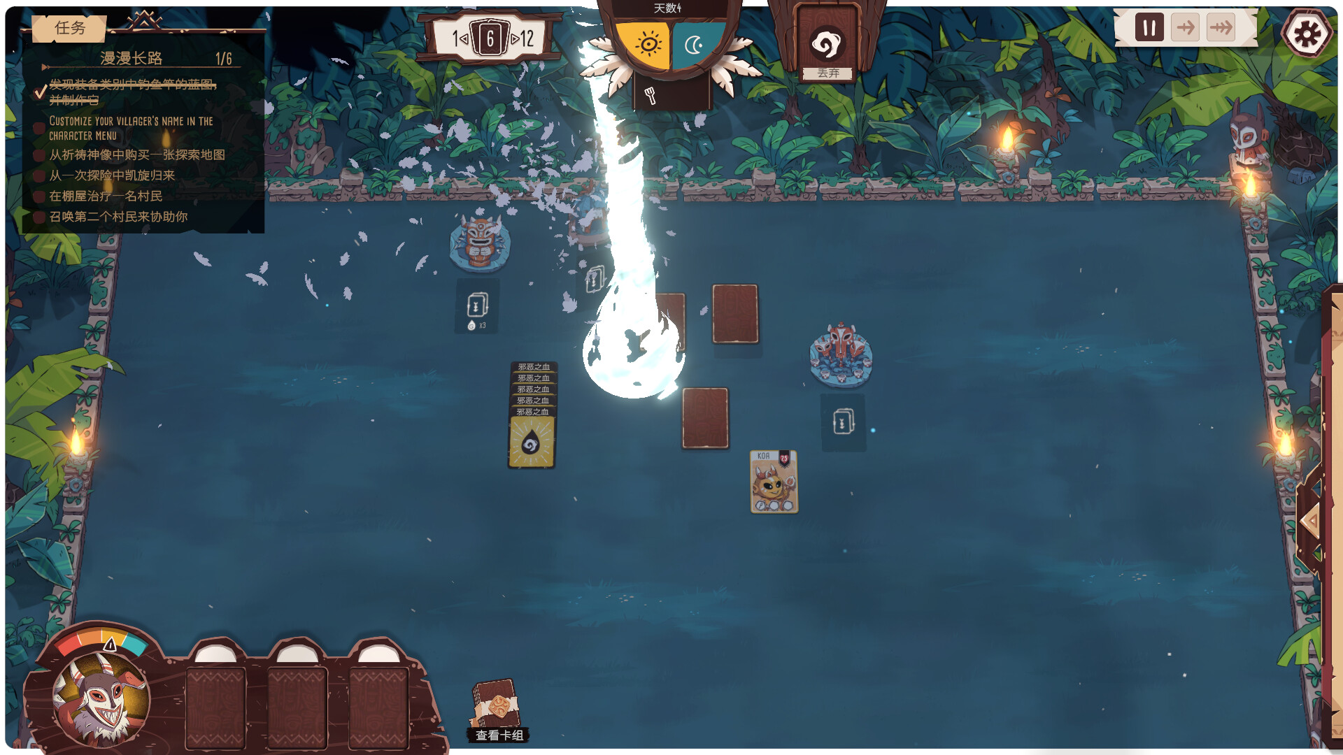 资源是村庄发展的根基,而获取资源的方式也充满策略性。打开卡包,解锁多种资源与功能卡牌,从简单的采集工具到稀有的资源卡,你需要合理规划每一张卡片的用途。在资源紧缺时,是选择集结所有族人加紧采集,还是冒险探险未知的土地?你的每一个选择都将深刻影响村庄的成长与存亡。