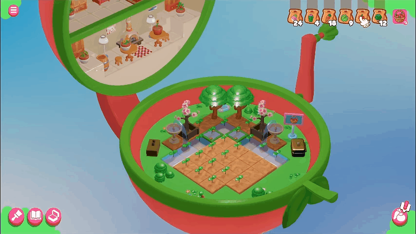 《手提菜园》是一款轻松可爱的休闲种植游戏,以魔法玩具世界为背景,融合园艺种植、策略解谜和布置摆放的玩法。在游戏中,你能自由培育植物,随心装扮菜园,还能揭开动人故事,实现心灵的治愈。