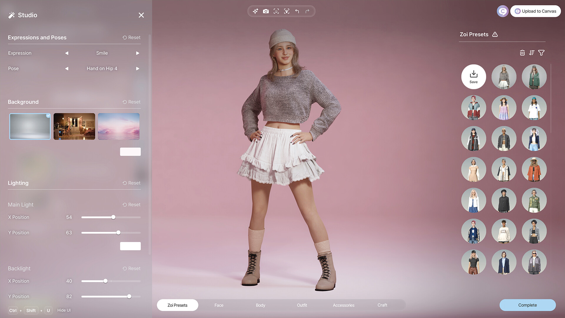 通过 250 多种自定义选项,对头发、皮肤、体型、服装、配饰、美甲造型等方面进行调整,设计出独一无二的 Zoi。