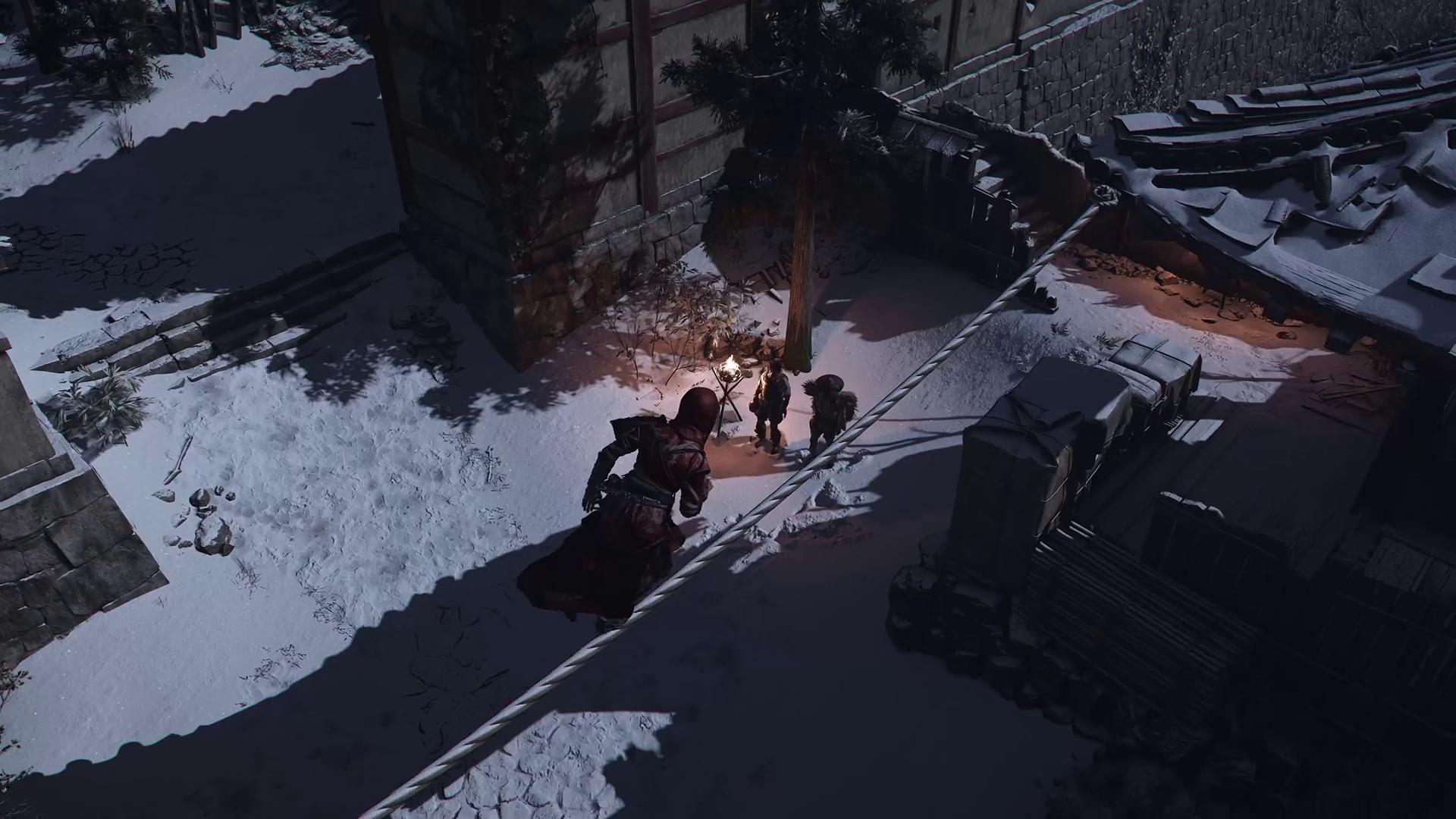 扮演身手敏捷、足智多谋的忍者奈绪江,利用光线、声响与阴影藏形匿踪。凭借全新的抓钩与丰富的跑酷动作深入敌后,用手里剑或烟雾弹干扰守卫,再用袖剑暗杀你的目标。化身武士弥助,使用弓箭悄无声息解决敌人,或以武士刀和薙刀施展势不可挡的近战连击。