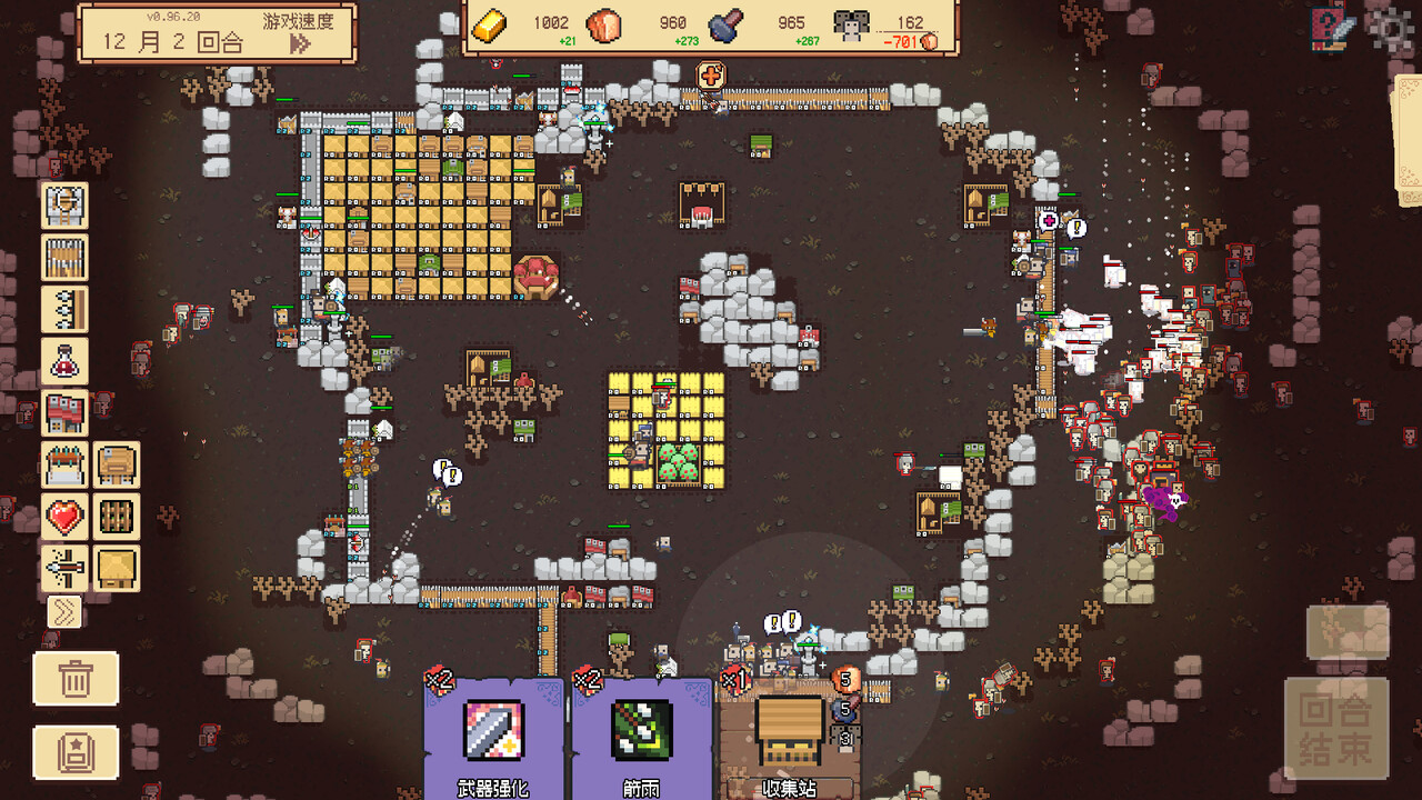每个月末,敌人会来袭,试图摧毁你的城镇!他们从四面八方涌来,势不可挡。你需要不断提升防御能力,抵御越来越强大的敌人波次,确保城镇的安全。战斗的紧张与刺激将时刻考验你的应变能力和战略智慧。