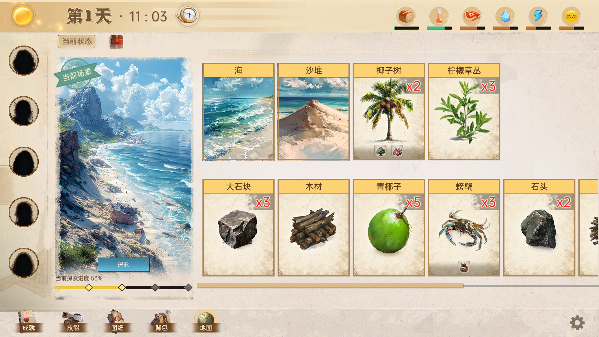 食物与资源是你活下去的关键,通过采集或狩猎确保你能度过每一天。