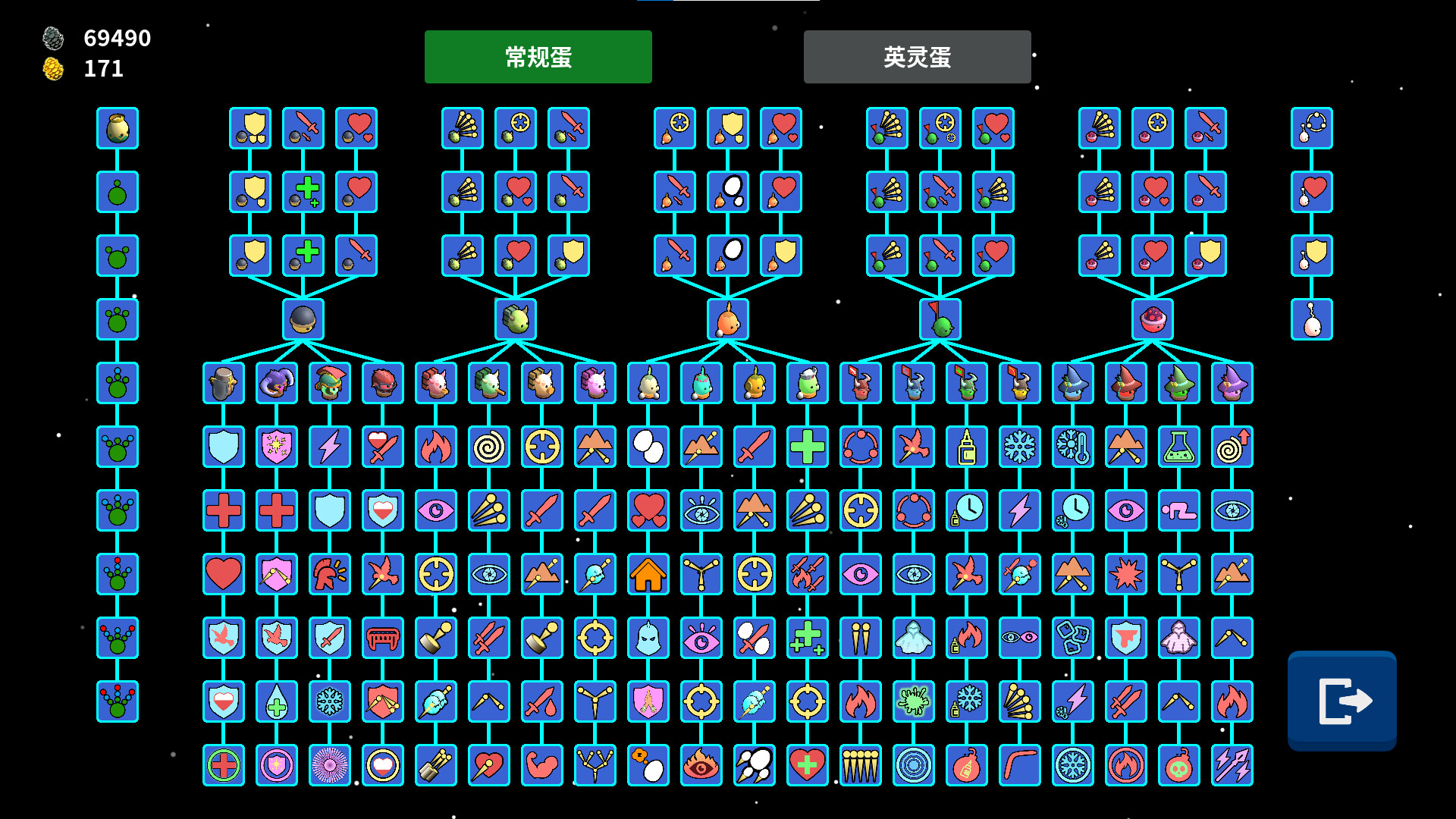 每种高级蛋可以在6种技能中选择3项进行学习,每种英灵蛋可以在8种技能中选择4项进行学习,在庞大的策略库中选择多种技能搭配,构筑起属于自己的阵容!