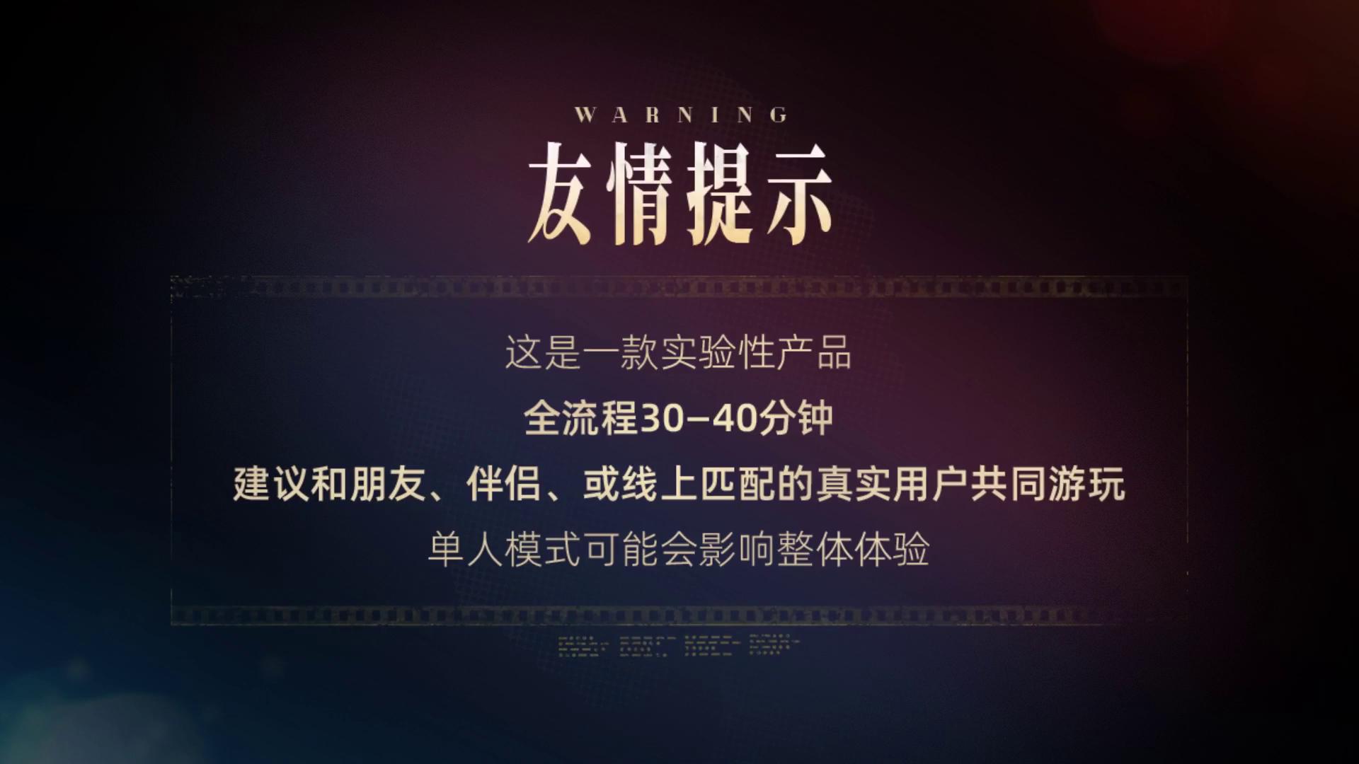 这是一款主打朋友和情侣等社交体验的双人互动影游,旨在为你们营造一个轻松有趣的相处环境,故事情节相对不那么严肃。为了保证最佳互动体验,建议您和朋友、伴侣等熟悉、亲密或半亲密关系的伙伴联机体验。