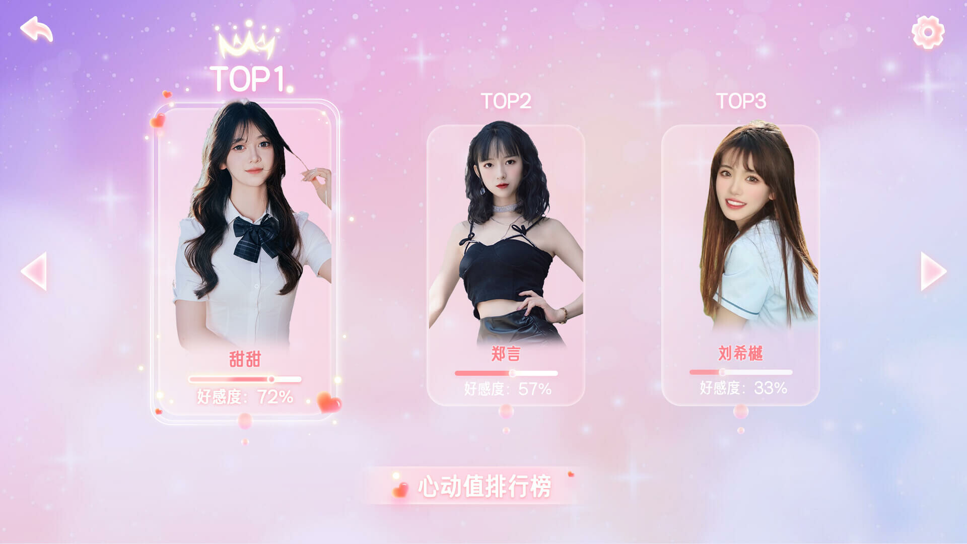 在游戏中,你将成为恋综节目的主角,决定着爱情的走向。无论是与嘉宾温馨甜蜜牵手,还是经历戏剧性的爱恨情仇,都取决于你的选择。你可以专注于一段感情,也可以成为海王撩遍全场,甚至成为恋综节目的人气王。《心动满屋》让你尽情体验恋爱的多种可能性,重塑你的爱情观念,开启属于你的恋爱冒险之旅。