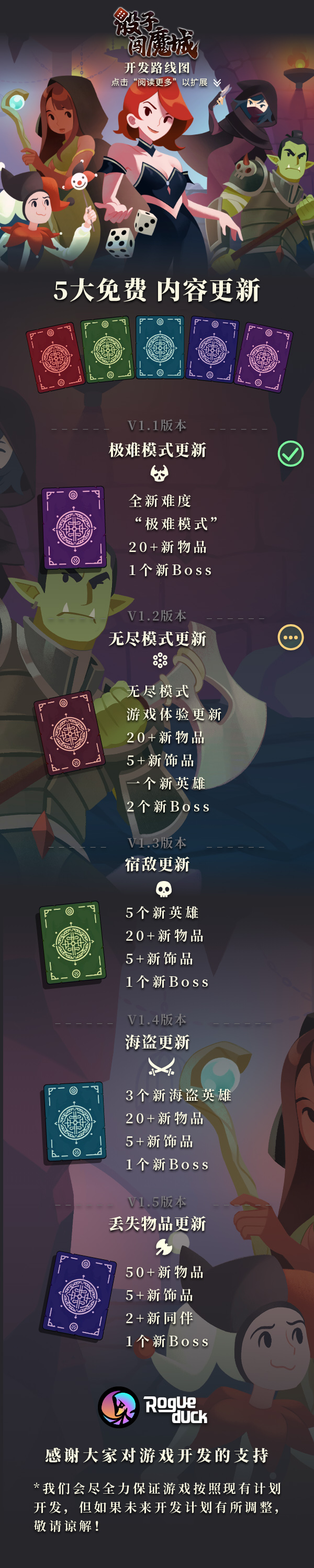 游戏中有20多种职业,每种职业都有独特的能力和游戏风格。让玩家每次穿越地牢的旅程都是一次独特的体验,充满了意外的挑战和奖励。在关卡之间,玩家会获得物品升级,这些升级从掷骰结果到职业能力,都能让你变得更强大从而扭转局势。