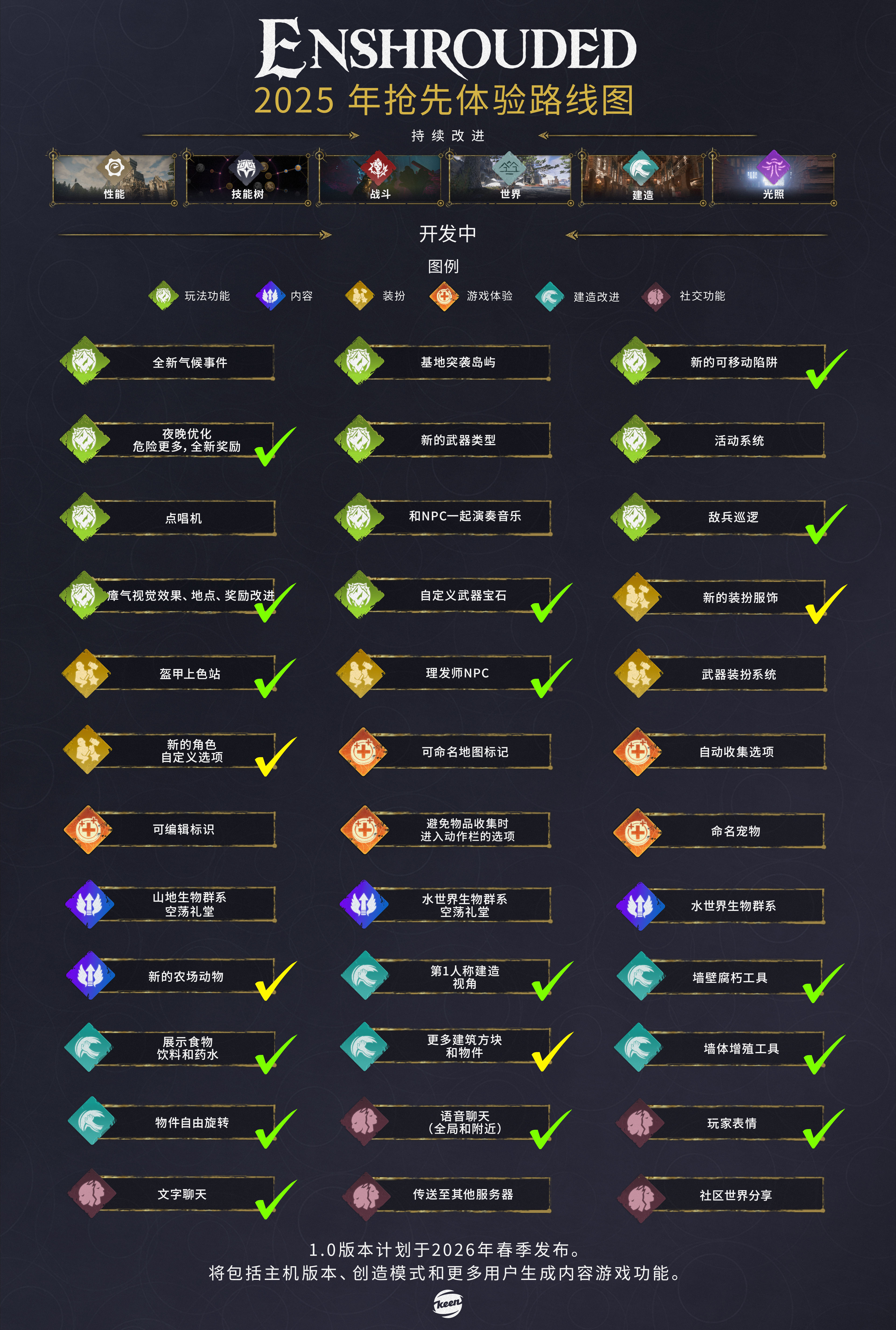 请查看我们的开发路线图,以及我们在抢先体验期间实装的内容