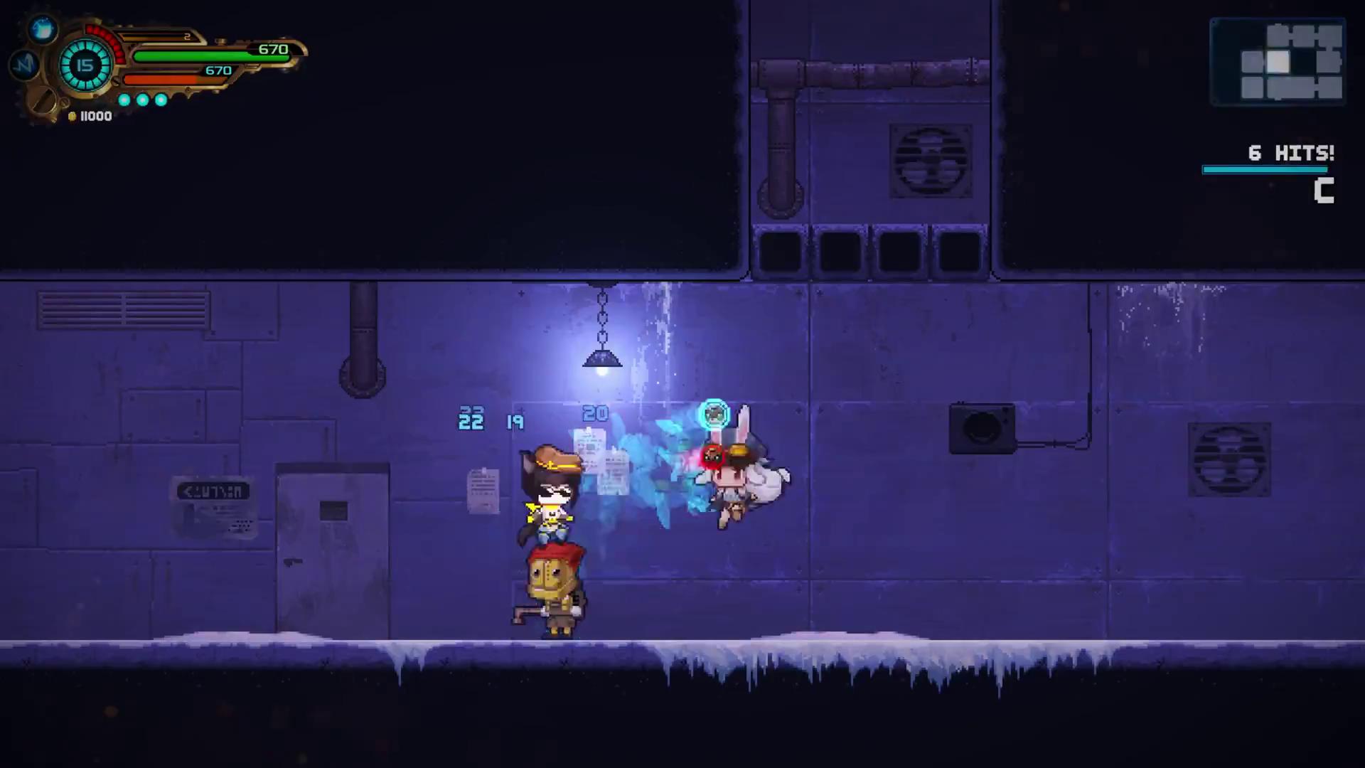 主角采维(Tevi)拥有灵活敏捷的身手,能同时使用短剑与魔力板手进行多种连击组合;而由伙伴——希莉雅(Celia)与赛布尔(Sable)化身的两枚浮游炮,也能在战斗中提供多种火力支援,使采维得以根据情况随时调整战斗风格,以华丽绚烂的连击快速击倒敌人!