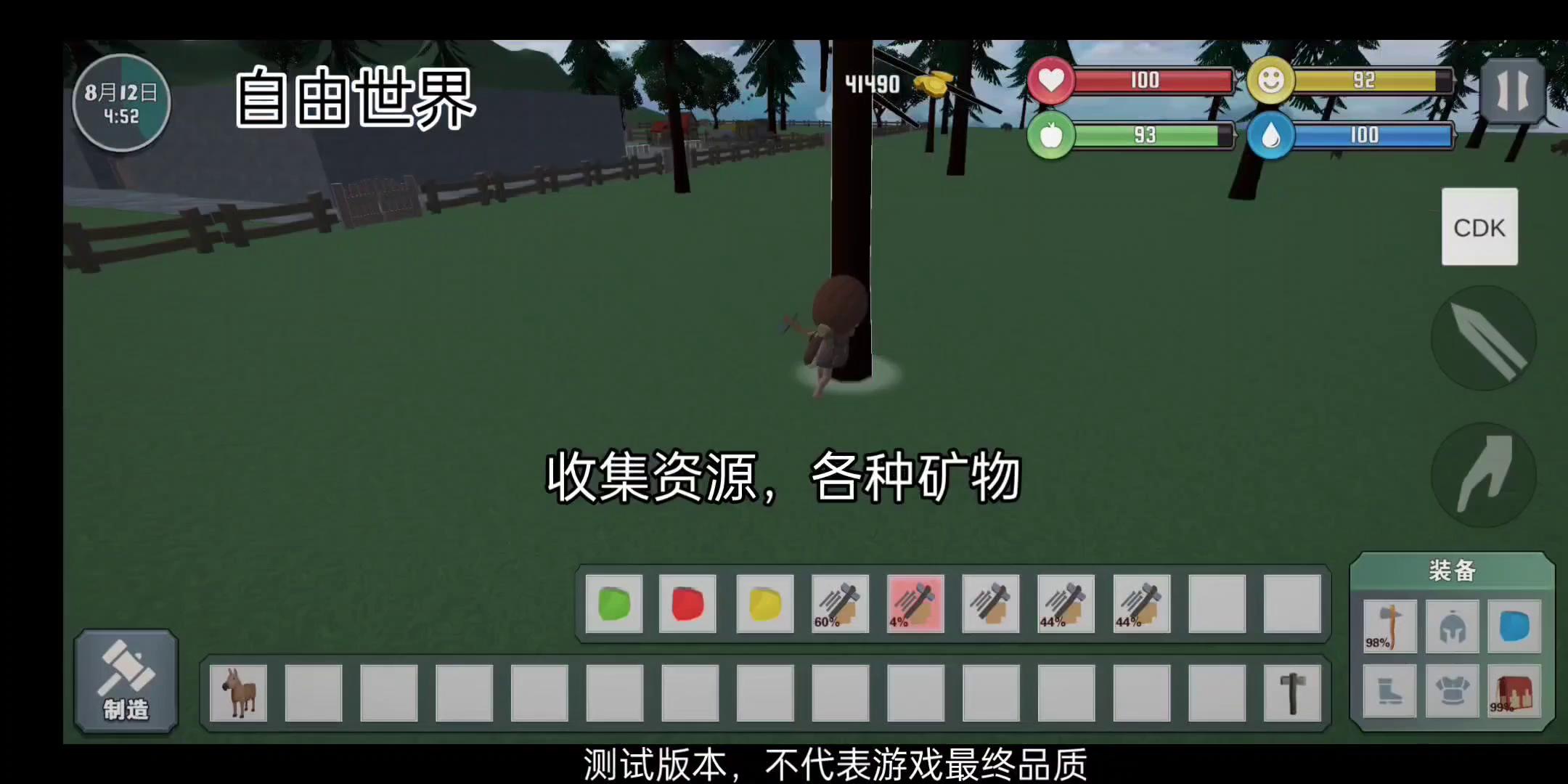 收集资源:各种木材、矿石;采集食物:种植蔬菜水果谷物、猎杀野生动物;合成材料:制造工具,装备等提升自己;烹饪食物:制作各种美食,填饱肚子;种植:可种植农作物、果树,获取大量食物;建造建筑:建设家园、房屋、养殖场、城镇等;驯服各种生物,协助您获取更多资源;挖掘、开坑、钓鱼等多种玩法