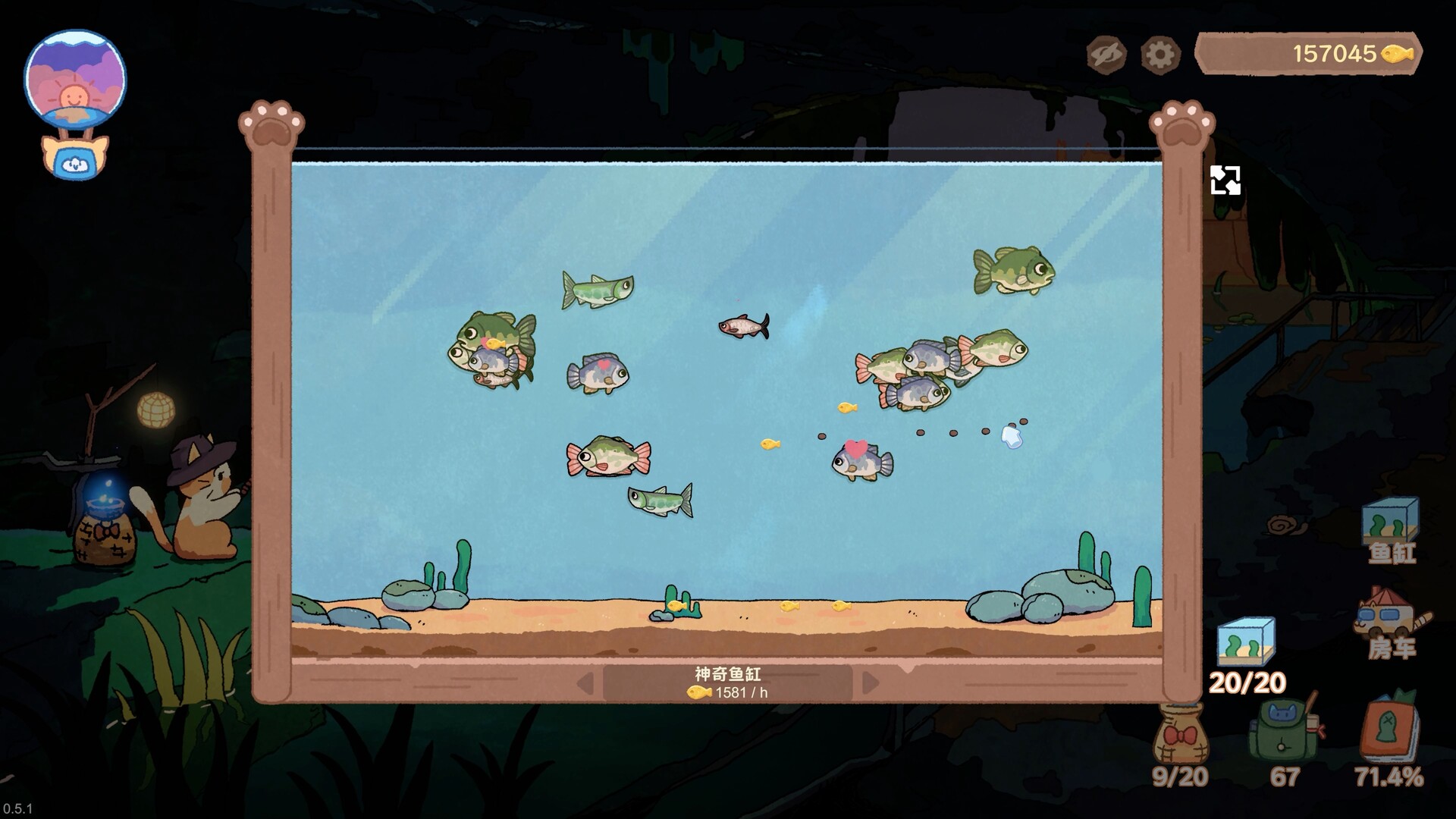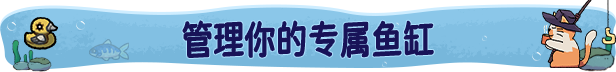 将钓到的鱼放入鱼缸,静静欣赏它们悠闲游动的身姿,同时还能获得额外收益。升级鱼缸,扩展空间,让你的鱼缸变得更加丰富!