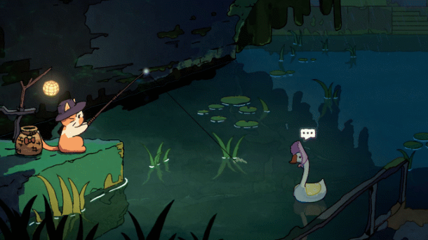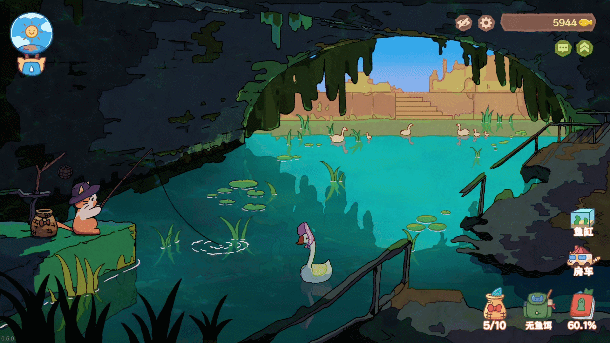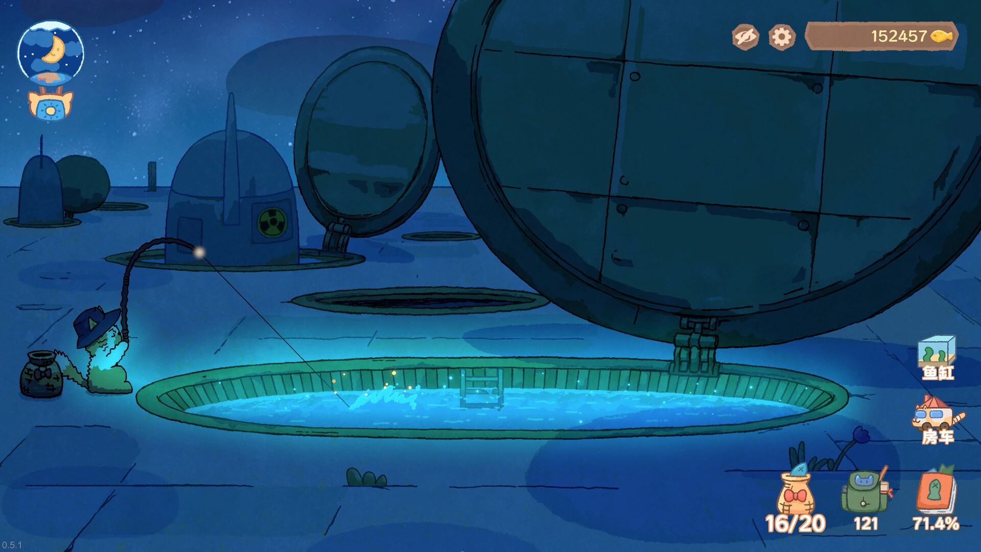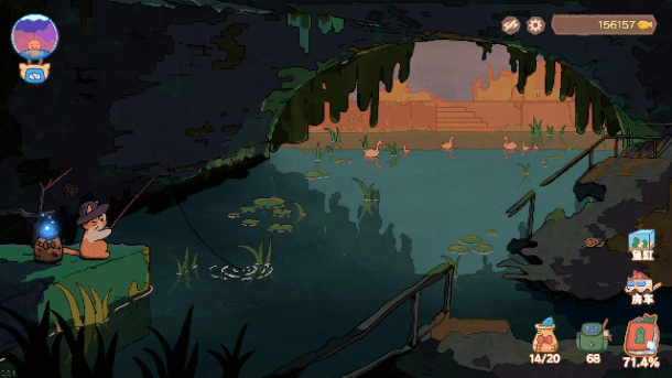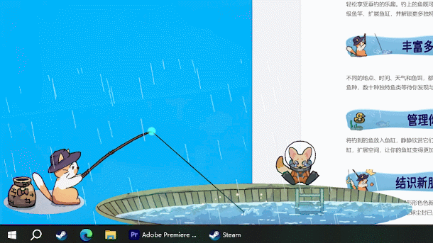在忙碌的间隙,和小猫菲舍一起踏上旅程,探索星球上不同氛围的风景,欣赏独特的自然风貌,享受悠闲惬意的垂钓时光。