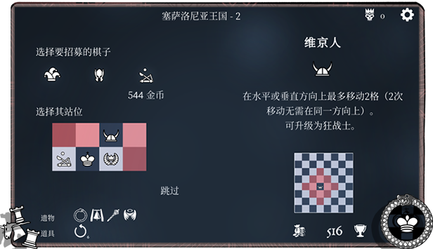 《衔尾蛇国王》结合了国际象棋的战术深度与肉鸽游戏的构筑多样性和重复游玩性,带来全新的国际象棋体验。在国际象棋规则的基础上,以棋盘为战场,指挥各式各样的棋子进行战斗、发现能提供永久增益的远古遗物、购买效果强劲的魔法道具,最终战胜邪恶女巫集会,夺回塞萨洛尼亚王国吧!