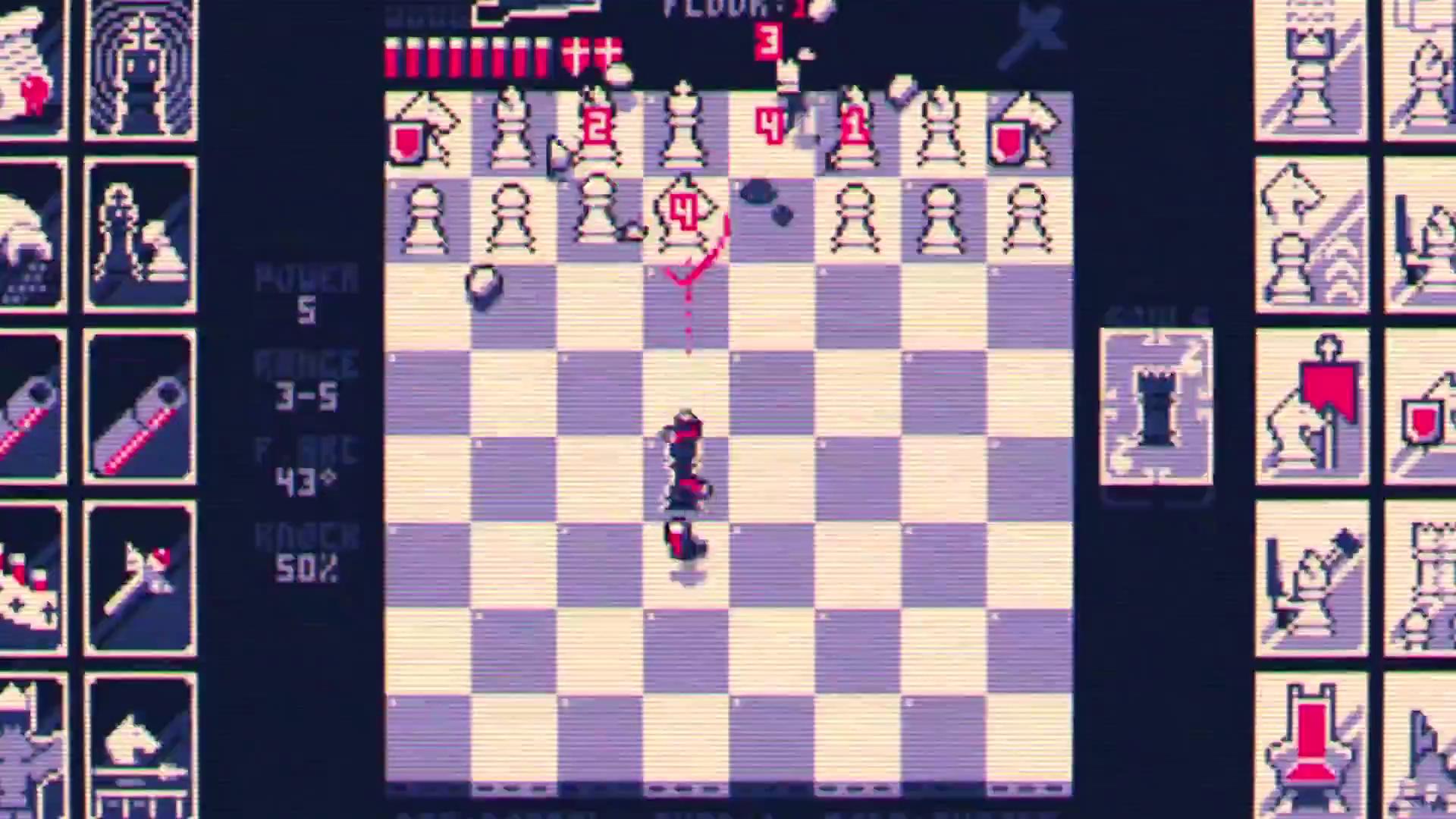 每一回合,你可以选择移动你的国王,或是射击敌人的棋子,之后你需要再次移动来给你的霰弹枪装弹。避免被对方将死、杀死敌方的王来完成每一层的关卡。在每一层结束后,你可以从两组随机的组合中进行选择,让你和敌方都获得一种升级。做出明智的抉择,突破更多的楼层,说不定你还真的有可能夺回你的王国。