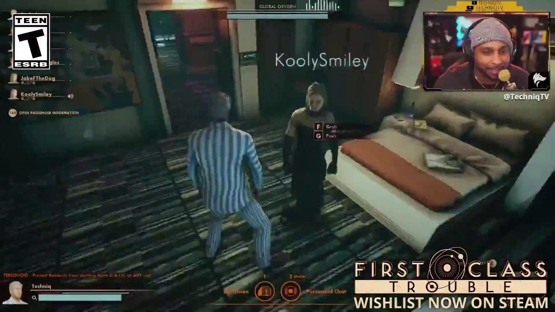 First Class Trouble是个玩家们爲了生存得互相合作,同时也得对付其他人的团体合作游戏。它的目的是关闭一艘奢侈宇宙游轮内的杀手人工智能。有些玩家是间谍,利用看起来像人类的杀手仿生人准备背叛其他玩家。