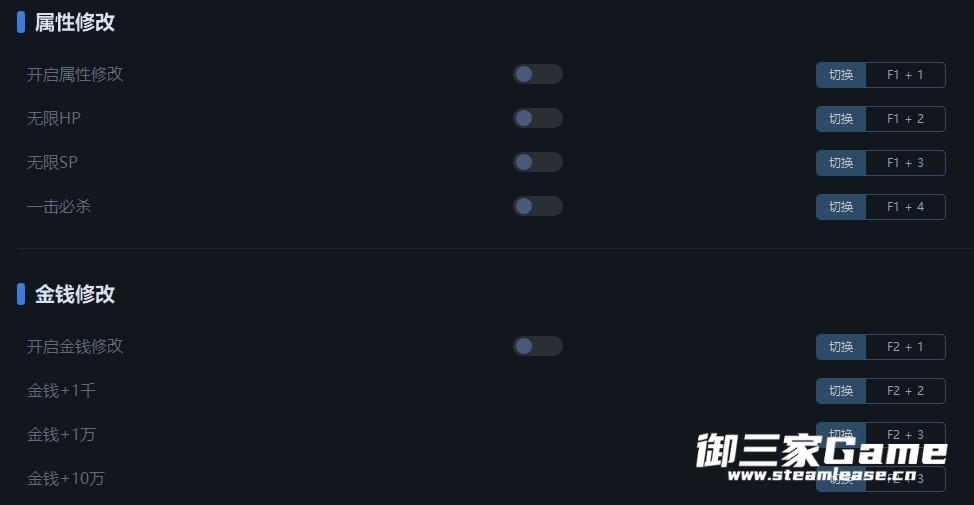 2、关于金钱修改:必须先激活"开启属性修改",然后按下<TAB>进入属性面板,当界面左上方显示金钱数量时激活相应的修改,激活后重新打开面板生效。