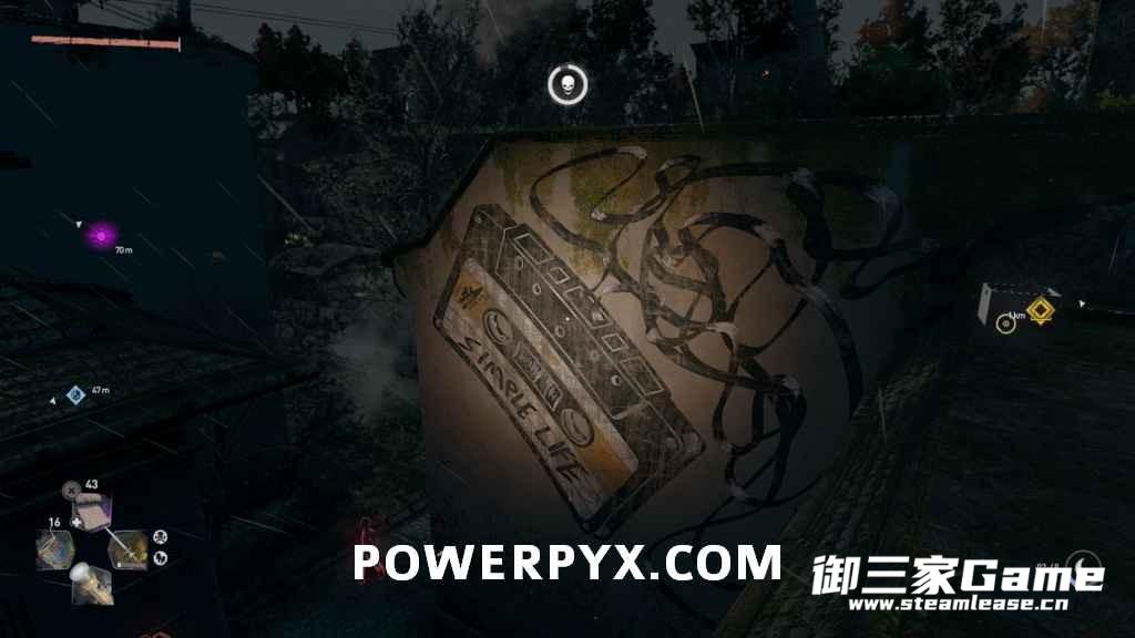 涂鸦一般都会出现在建筑物的墙壁上,很容易发现,涂鸦附近会有一个红色盒子,把它捡起来就视为收集了这个涂鸦。通关游戏后,依然可以在自由探索期间找到所有的涂鸦,不用担心错过。