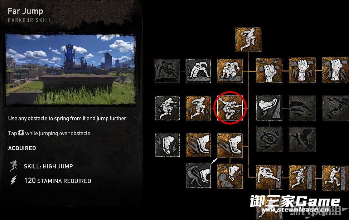 1.学习跑酷技能“远跳”,这个技能在前期就能轻松解锁。
