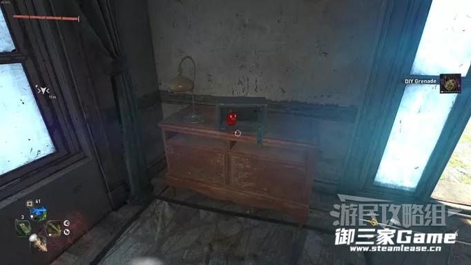 位于采石场南方,GRE异常目标的对面。上楼进入卧室,柜子上有一个保险箱(密码是22 67 66),打开就能获得红鸭。