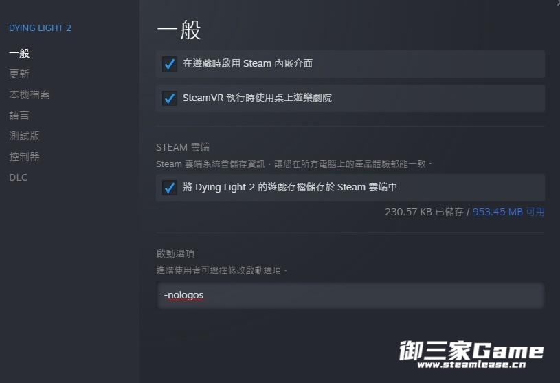 在启动选项一栏输入-nologos,即可跳过开头影片。