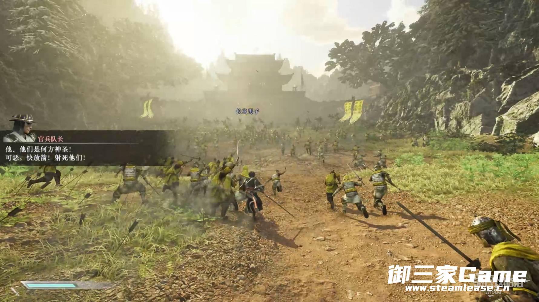 跟关羽一块将路上的官兵全部干掉,走到一座城池前面,可以看到不知名的长发黄色披风男子带着一群黄巾军赶来帮助我们,即刻大战略效果进攻前方官兵。