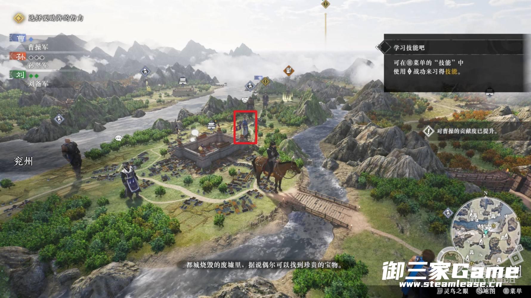 我们按照弱弱强的顺序先去打左上角的大军,无需直接干掉大军,击败大军内的军团长即可,当一个大军被击败,剩余兵力会往其他大军的位置跑,这里一定要骑马拦截。
