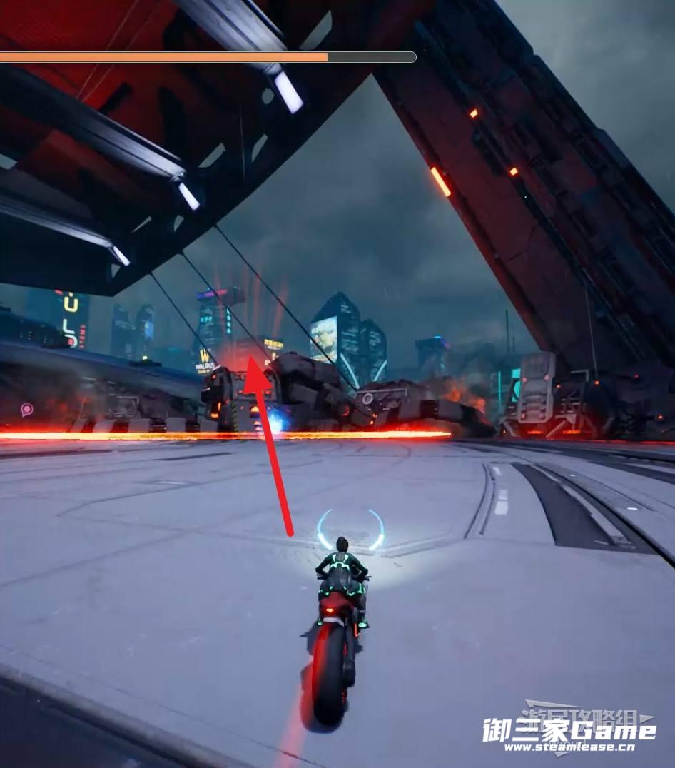 战斗开始时,需要我们驾驶摩托车拾取场地上的蓝色能量球,然后通过能量球的能量攻击BOSS,再继续拾取能量球重复此步骤。