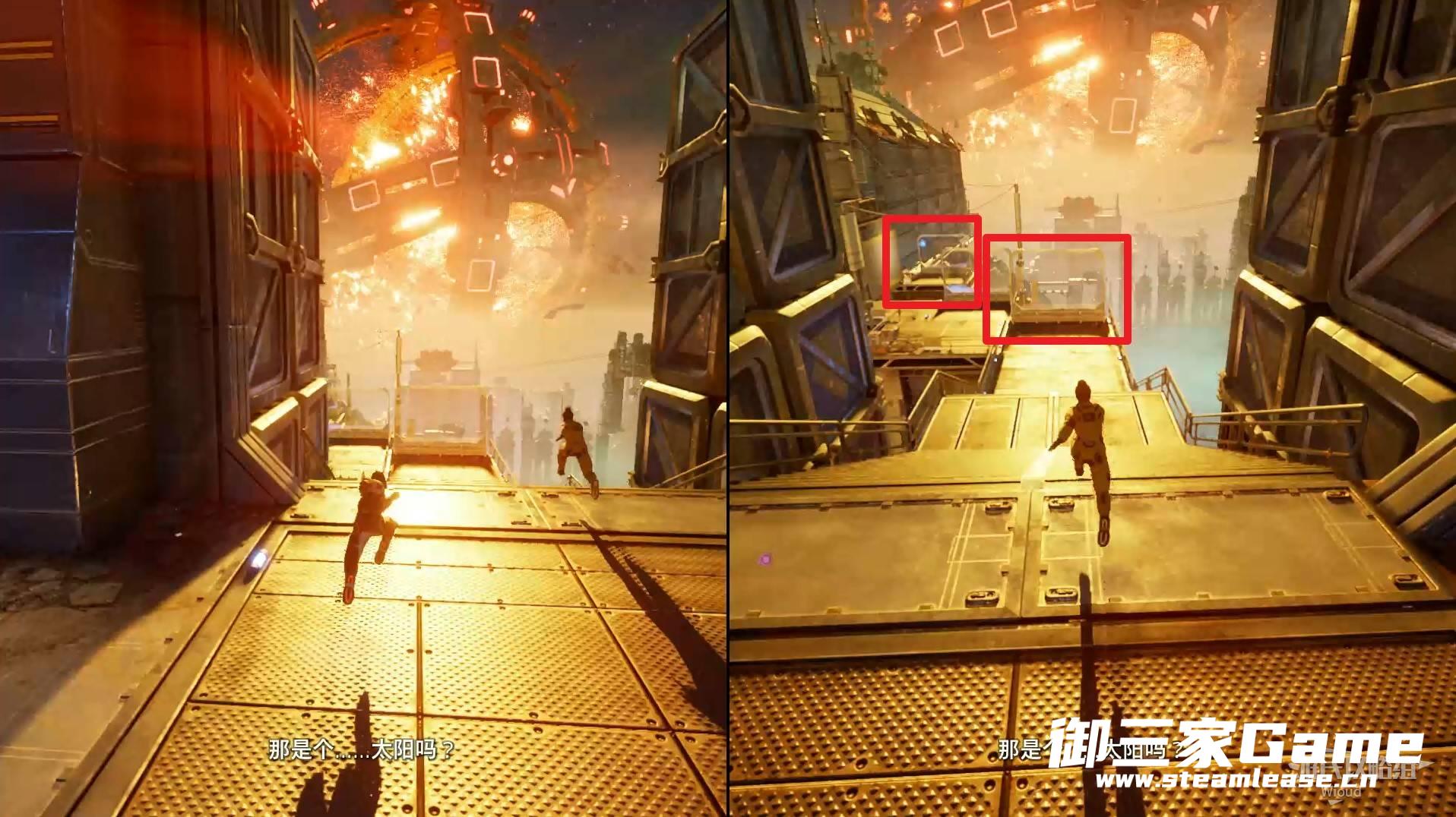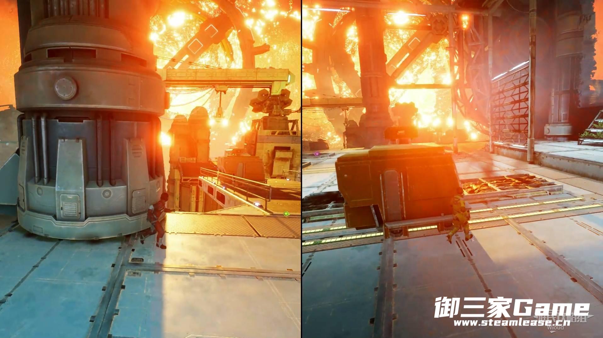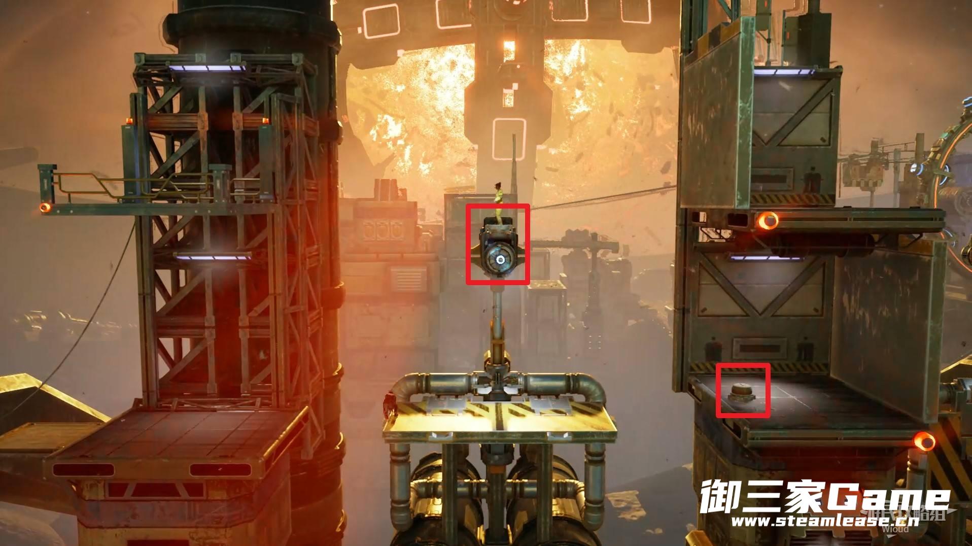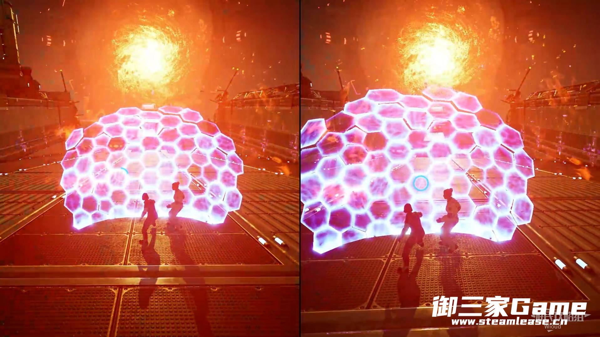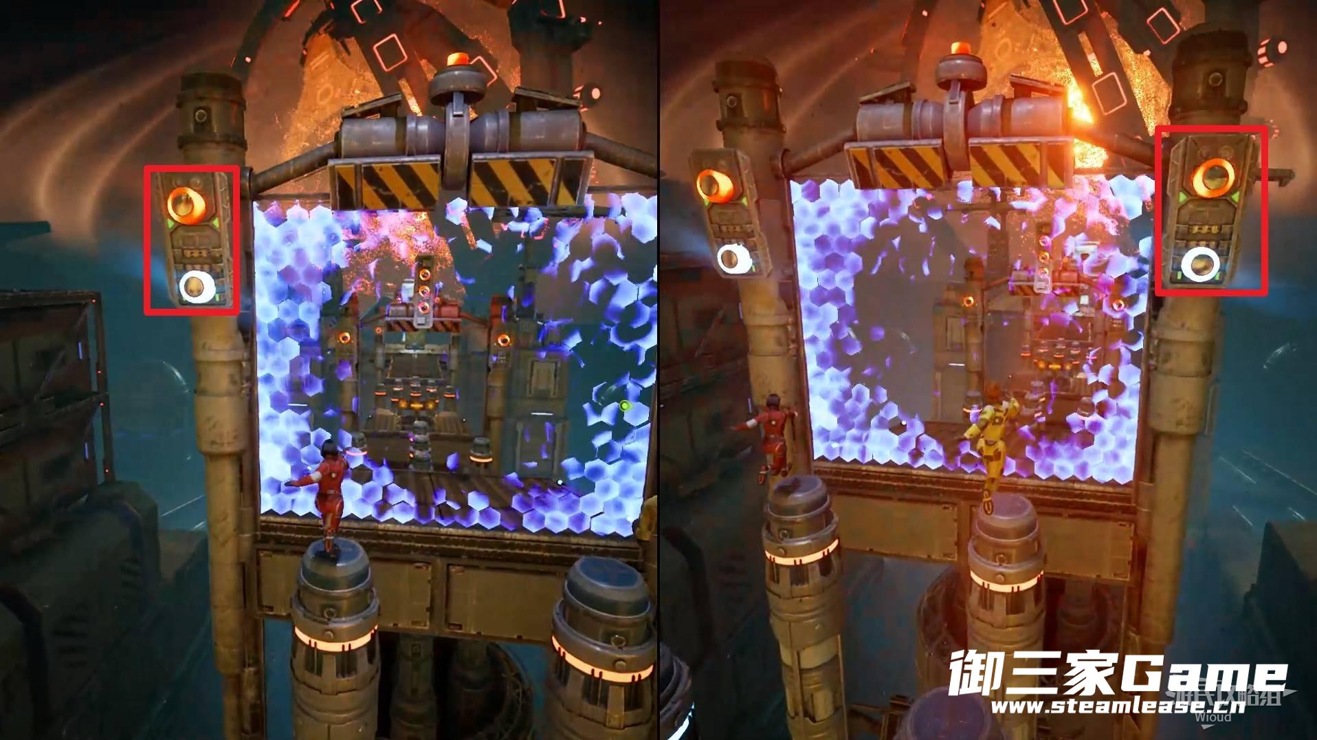 当快抵达终点时,会给玩家一个随身能量罩,但能量罩的持续时间很短还有冷却,因此二人需要合作交替启动防护罩,启动终点处的机关完成支线。