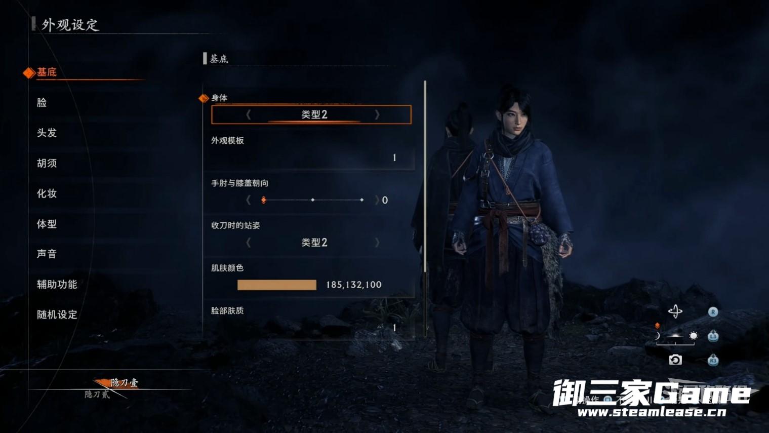 此处我们不仅能捏主角的脸,隐刀贰的外观也可以被改变,并且在后续的游戏中我们也可以操控隐刀贰进行游戏。