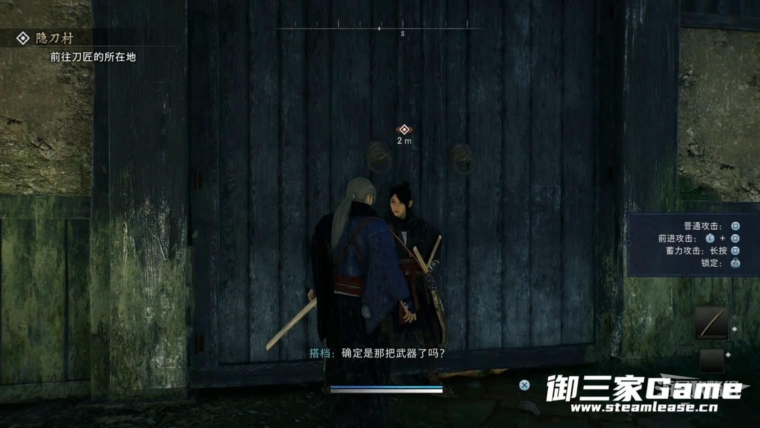 与隐刀贰对话,此处还能够返回一下继续回去选武器,如果确定没问题即可继续跟着隐刀贰走。