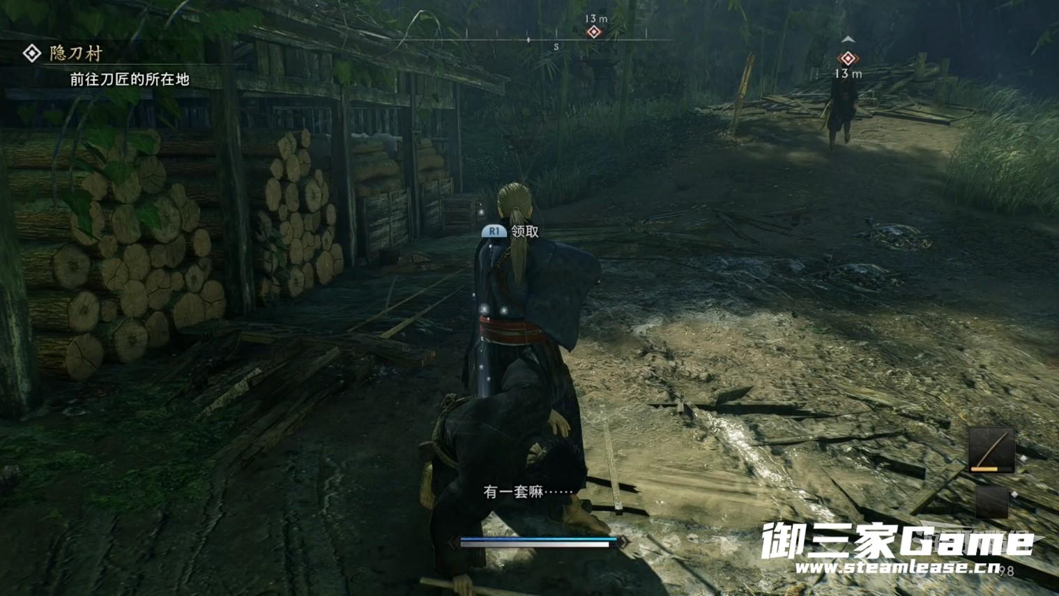 这里记得可以选择两把武器走,按下R1与十字键上可以切换武器的选择。