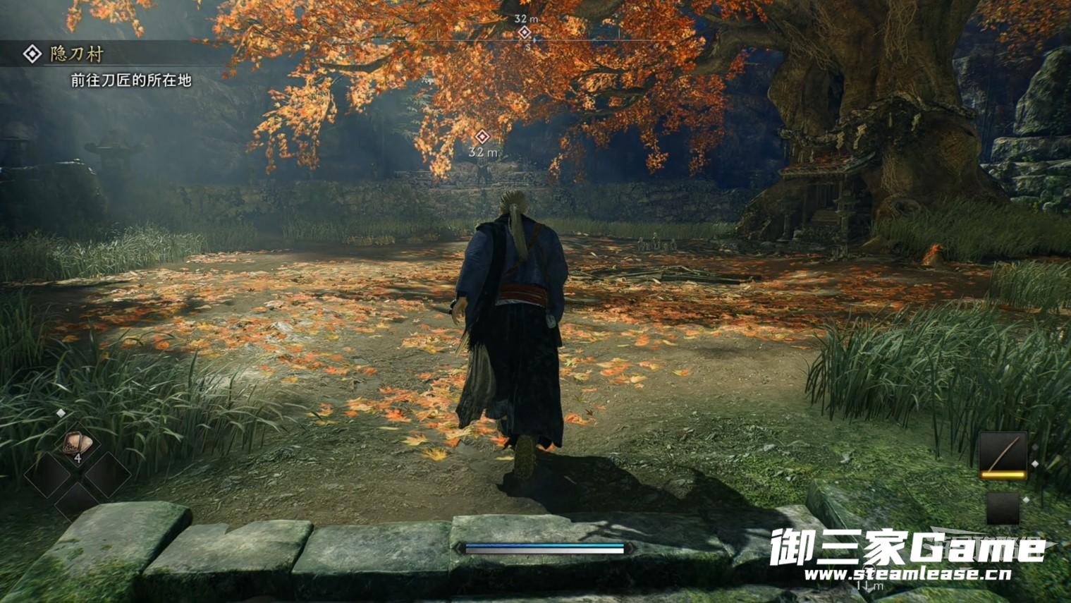 走过一片竹林后可以看到第一个旗帜(篝火),在旗帜这里可以恢复自己的状态,一些敌人也会跟着重新复活。