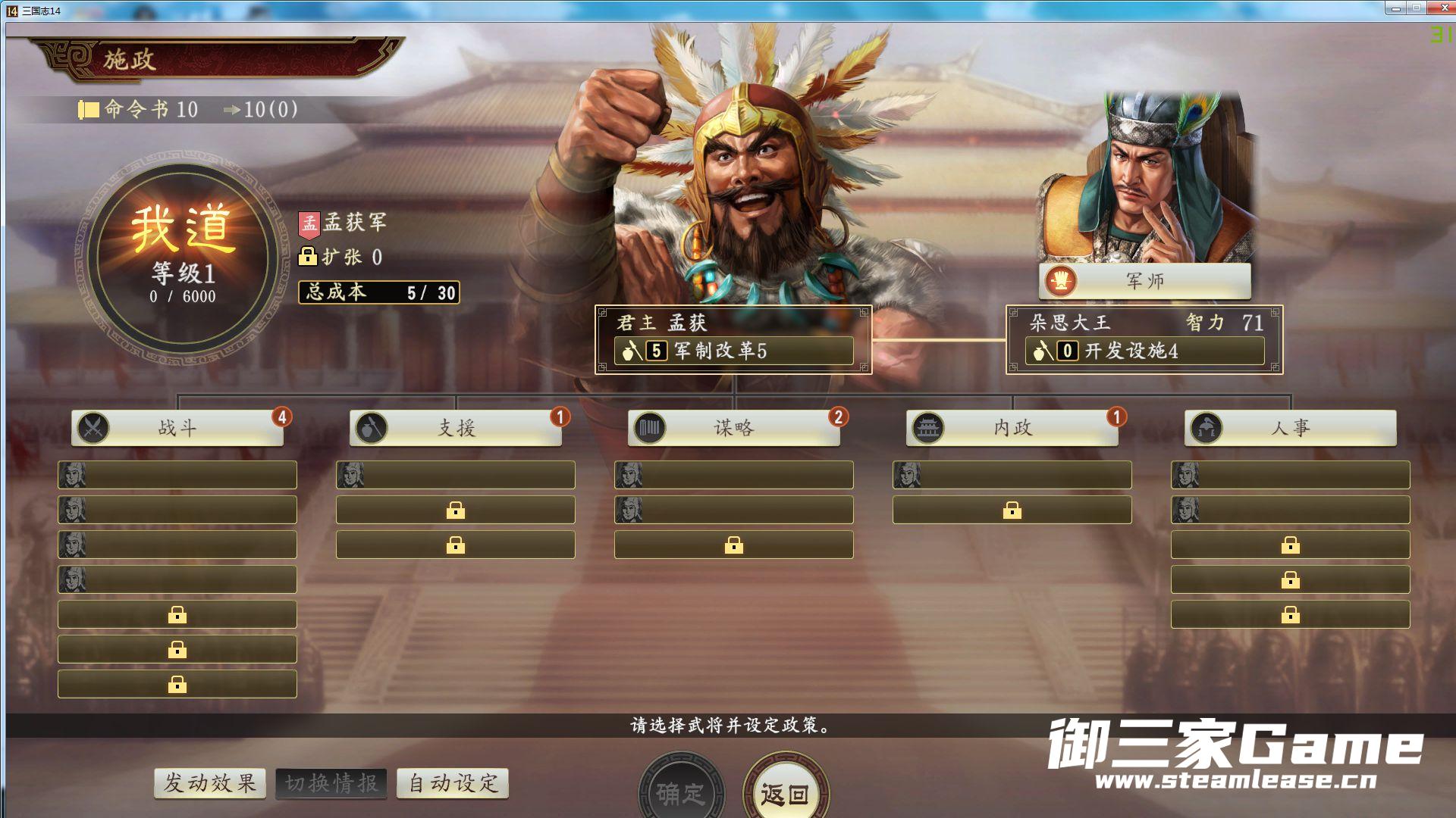 本作孟获自带军师,这还是让人很惊喜的,70+1智力的军师也总比没有强.