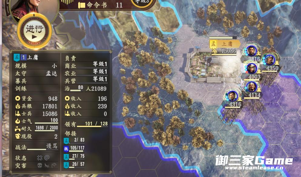 城防跟攻击力本来就不低,吃了混乱后城防下降,而且我方不受城池攻击。