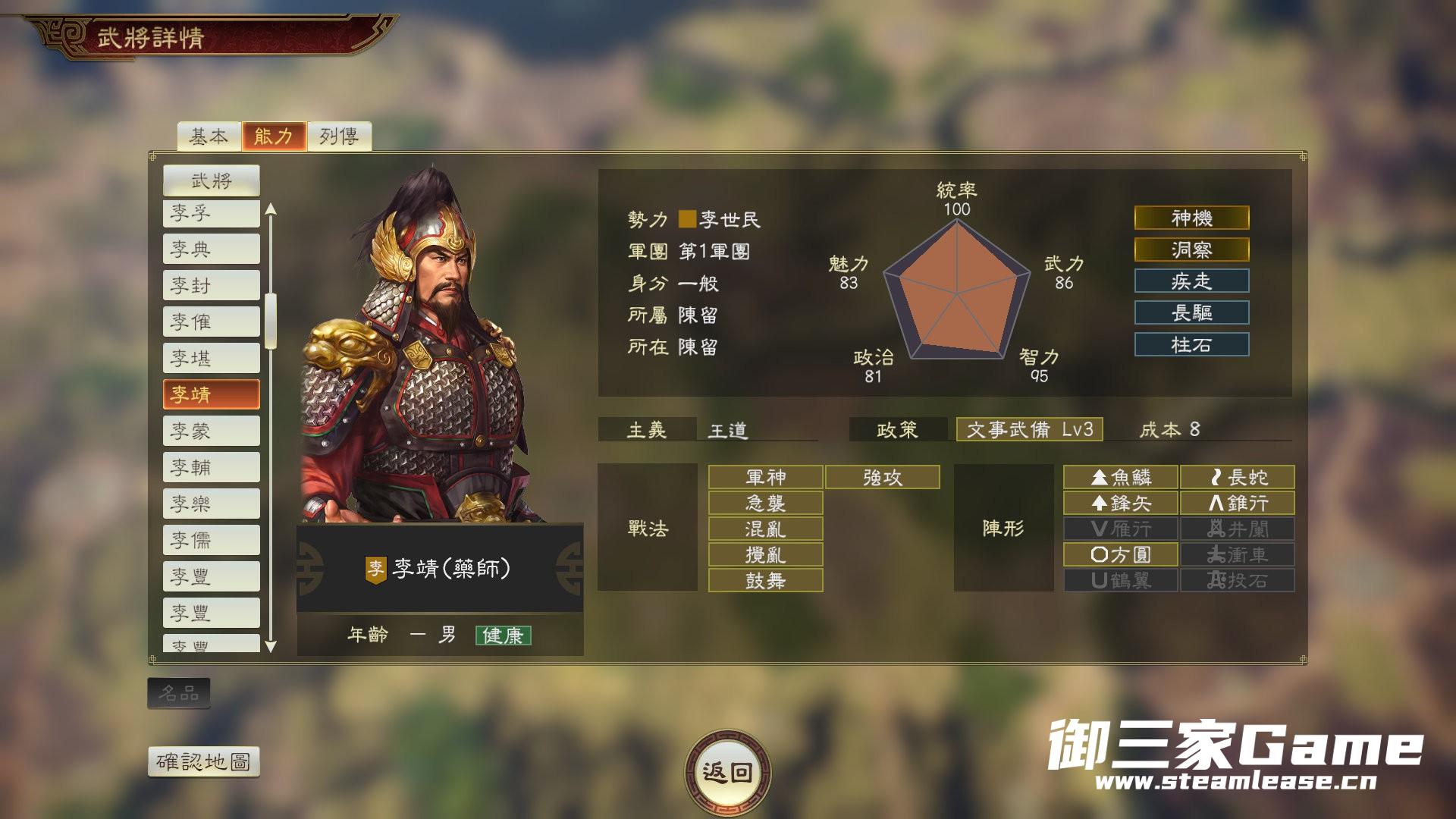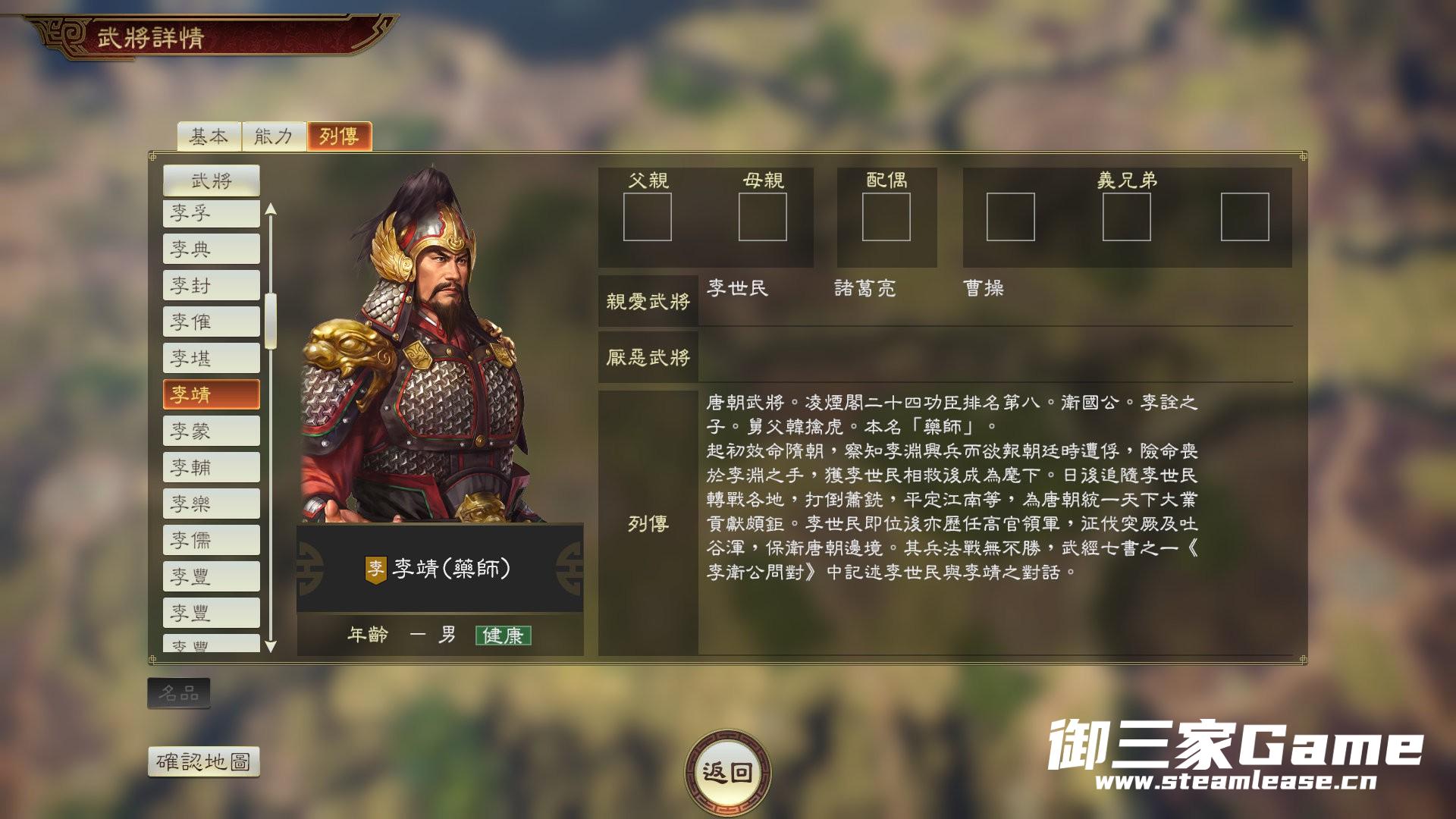 《三国志14威力加强版》新增了武将隐藏特典李靖,李靖是对李唐统一天下做出庞大贡献的名将,那么在《三国志14威力加强版》游戏中李靖的能力值怎么样?获得方法是什么呢?下面给大家带来玩家“天策の银羽”分享的《三国志14威力加强版》隐藏特典武将李靖能力值以及获得方法。