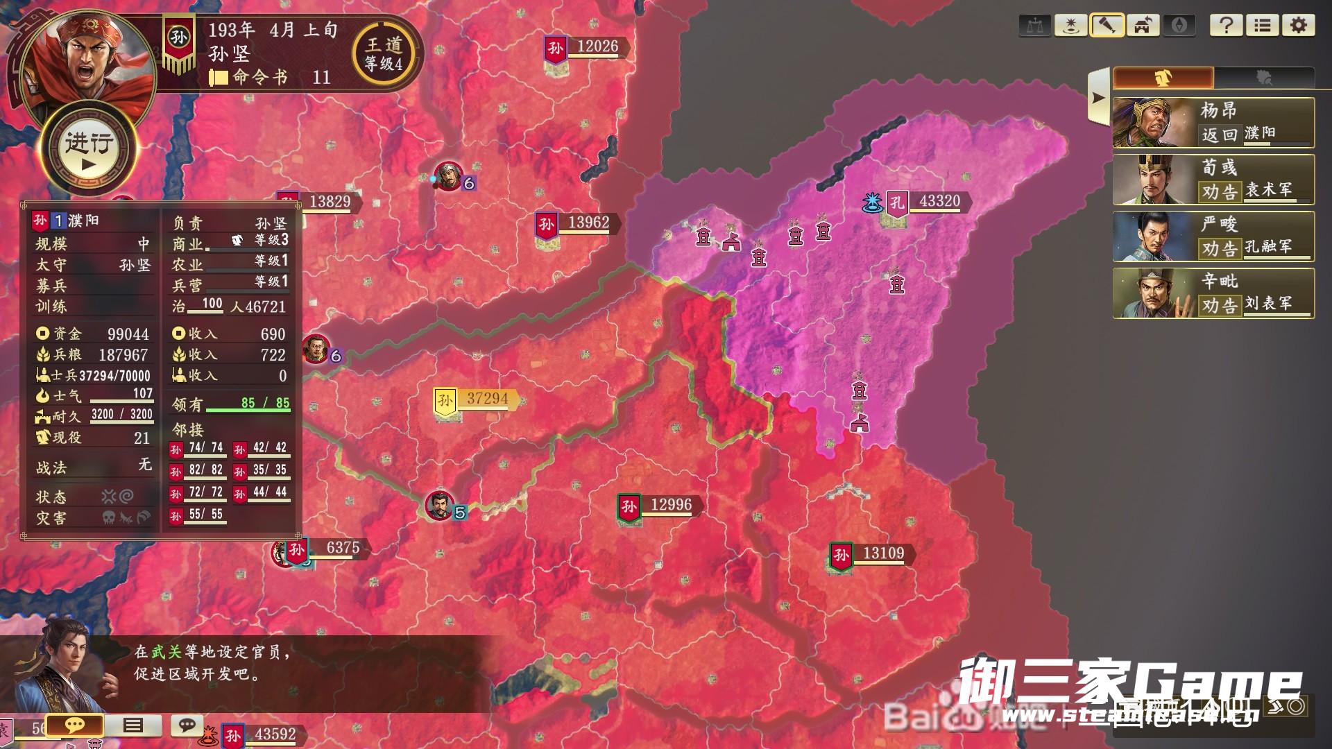 《三国志14》劝降流也是一种赢得胜利的方式,那么在反董卓联盟剧本当中,玩家该如何使用劝降流获得胜利呢?下面请看“24998363”带来的《三国志14》190反董卓联盟顶级难度孙坚劝降流通关讲解,希望能帮助到大家。