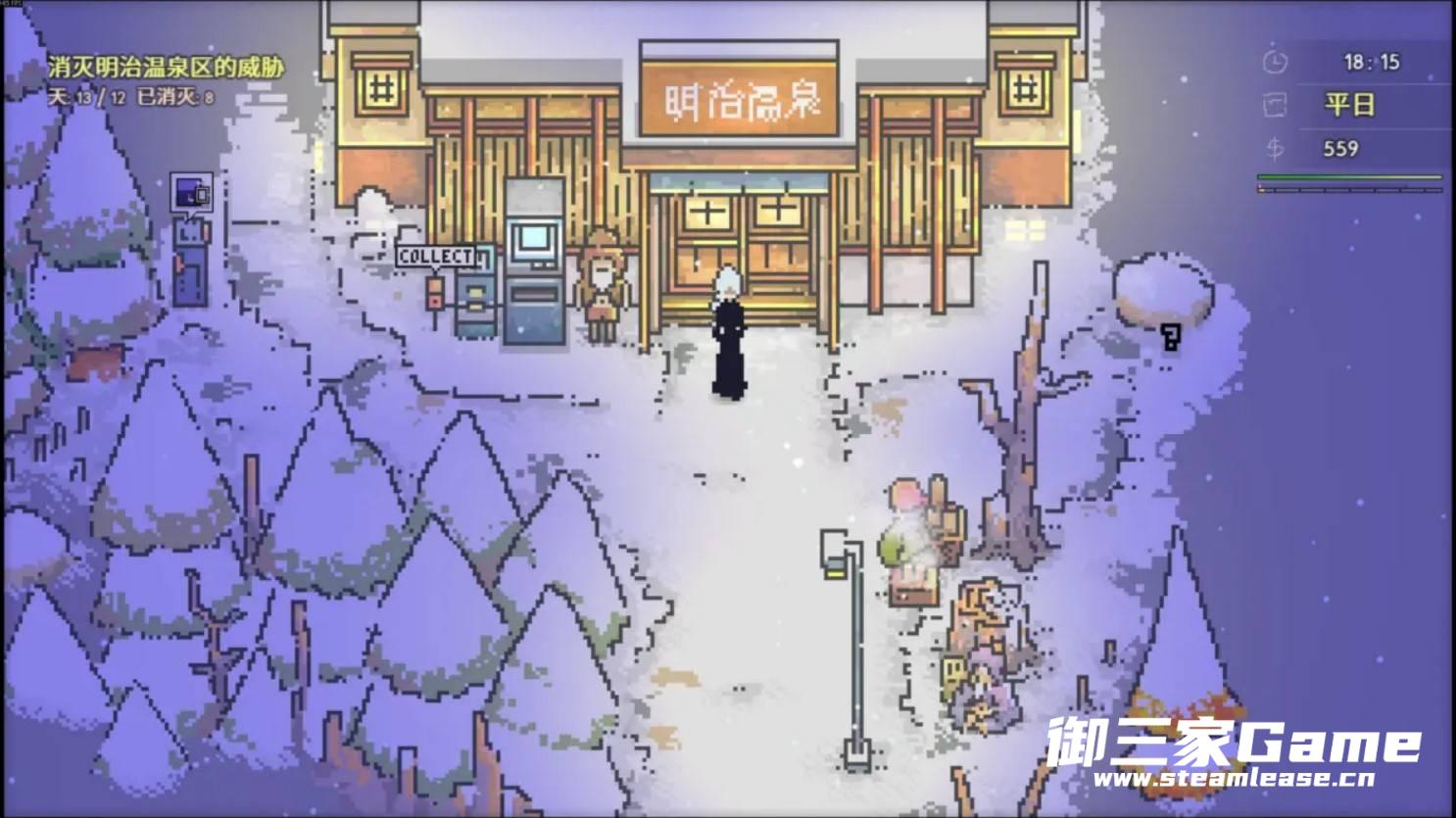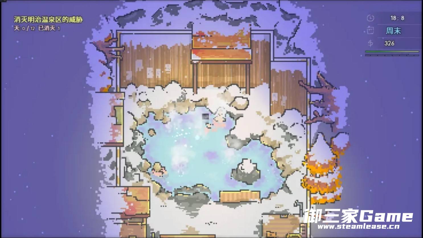 泡温泉获得+抗性,泡太久会获得热的图标,再泡一会屏幕会变暗,算睡过去了。