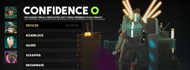 每个角色已经拥有了所有可以解锁的服饰——他们只是没有穿这些服饰的信心. 人物通过实现反映其长处和价值的可选额外目标而赢得信心.