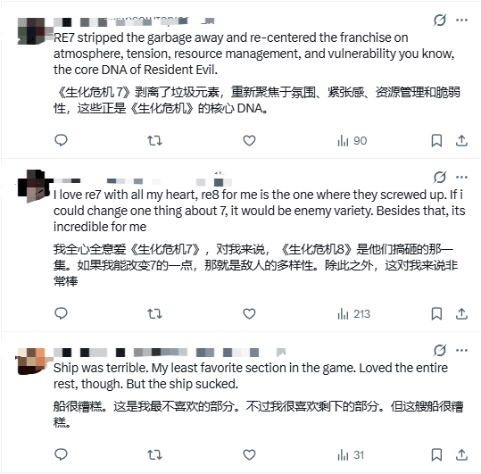 讨论导火索是一位玩家的极端观点:《生化7》比《生化6》错误更多,险些带歪系列主基调,是系列最差作品。该言论引发热议后,@AestheticGamer1下场表态,态度折中:既偏爱《生化7》,也承认自己比多数人喜欢《生化6》。