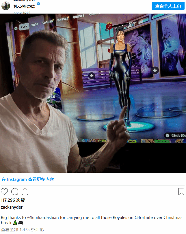 《正义联盟》导演扎克·施奈德近期在Instagram发布动态,特意向金·卡戴珊表达感谢,称对方在圣诞假期期间带着自己在《堡垒之夜》中“一路吃鸡”,趣味互动引发关注。值得一提的是,在游戏数百款可选皮肤(含多款DC宇宙联动款式)中,施奈德唯独偏爱《堡垒之夜》新上线的金·卡戴珊皮肤,而这款皮肤目前已有约240万名玩家使用。