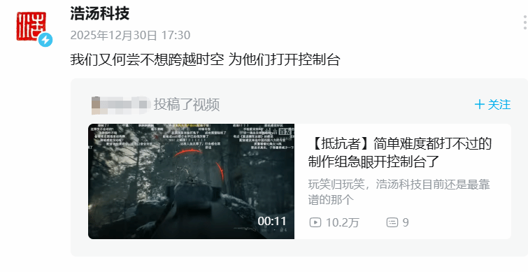 就在调侃声逐渐发酵时,游戏开发商浩汤科技的官方转发回应,瞬间让舆论画风完成反转。官方一句“我们又何尝不想跨越时空,为他们打开控制台”,没有辩解,没有回避,却精准击中了无数玩家的内心。