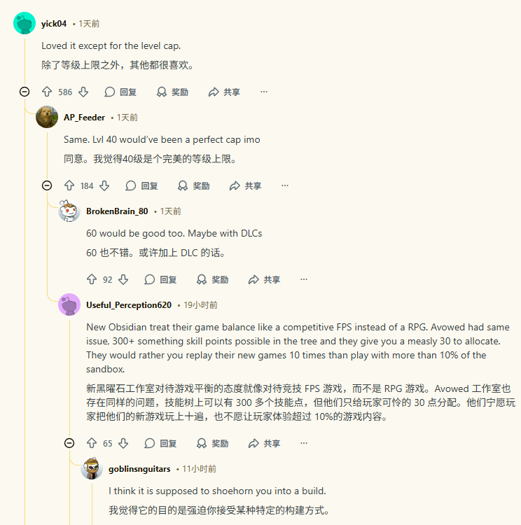 不过也有乐观的玩家给出了不同看法,他们认为随着后续DLC或资料片的推出,黑曜石工作室大概率会相应提高等级上限,届时这一问题有望得到妥善解决。