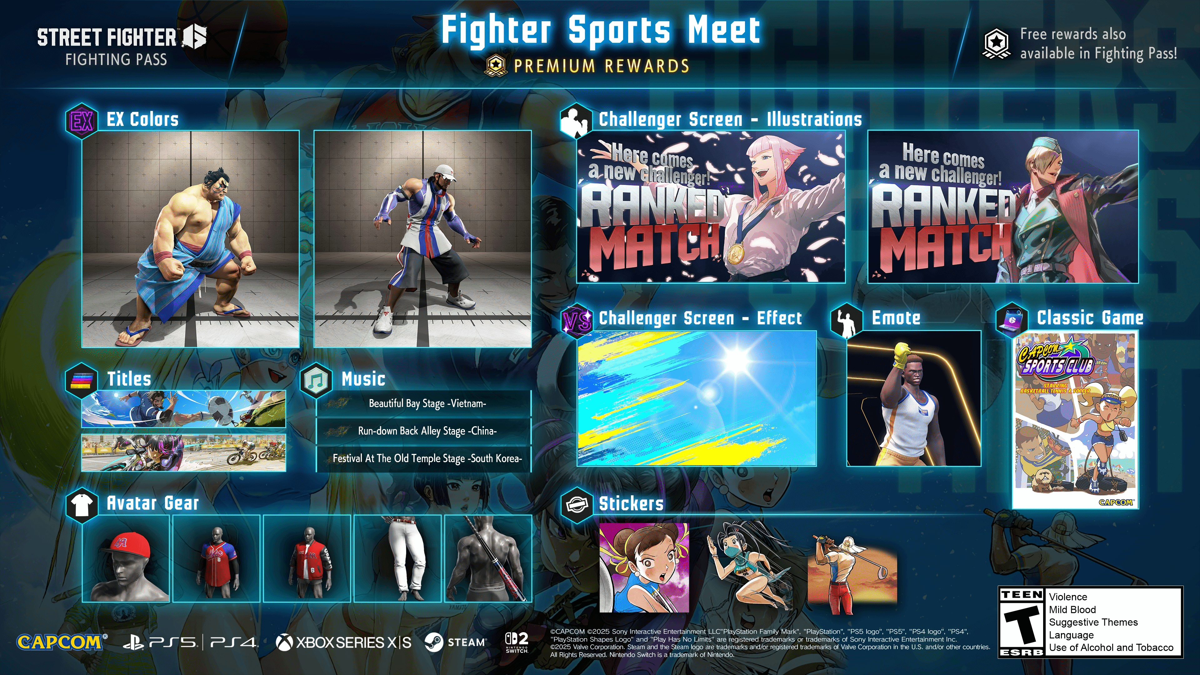近日,《街头霸王6》(简称《街霸6》)推出全新格斗通行证,这款以体育运动为核心主题的通行证被命名为“格斗手运动嘉年华”,现已正式上线。
