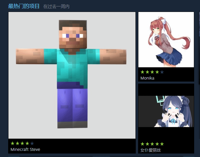 更令人意外的是,这款游戏的创意工坊已然呈现“井喷”态势。截至发稿时,创意工坊内的皮肤数量已飙升至292个。这里早已超越普通桌宠的范畴,俨然成为一场二次元角色的“变装盛宴”。